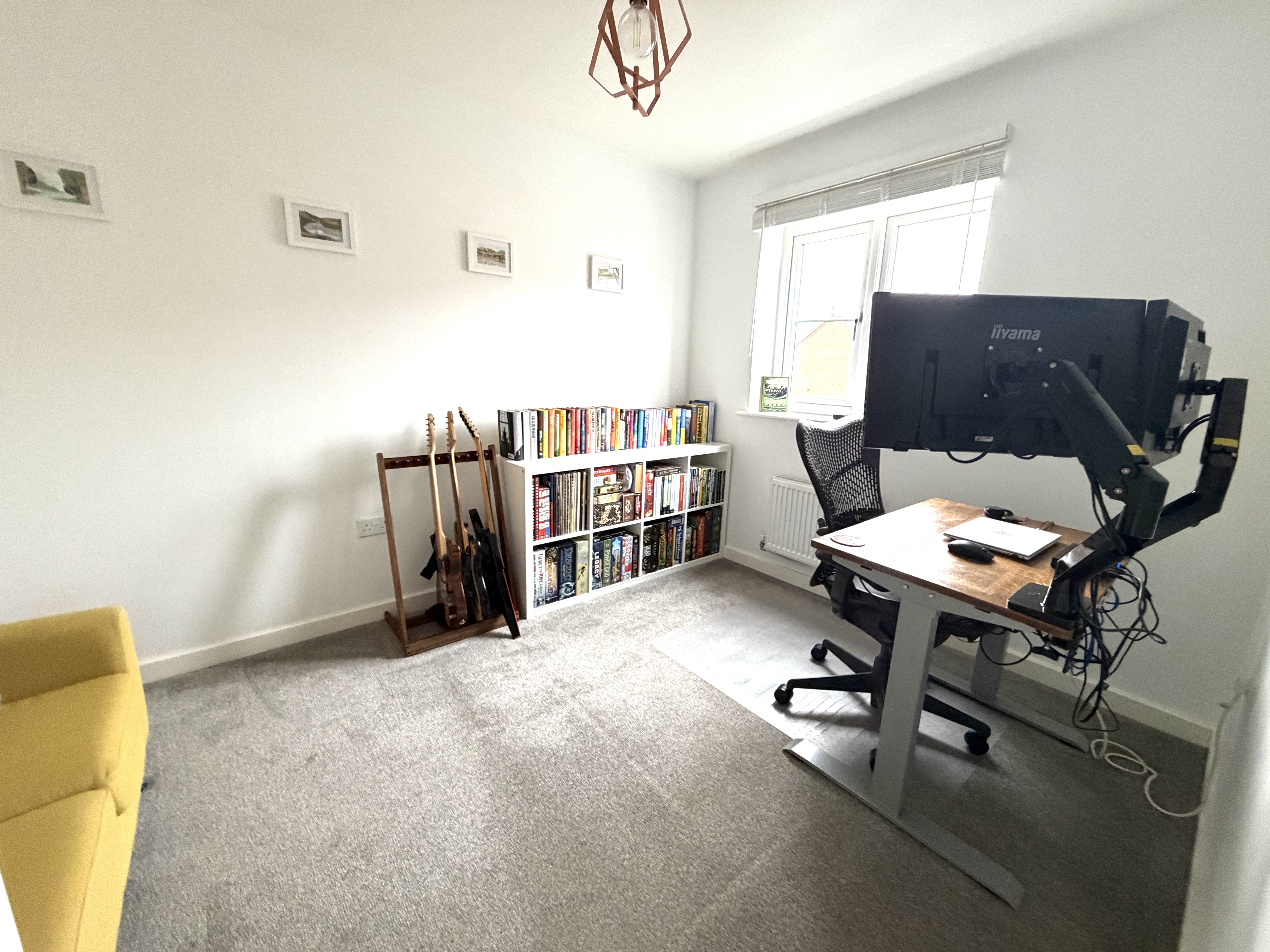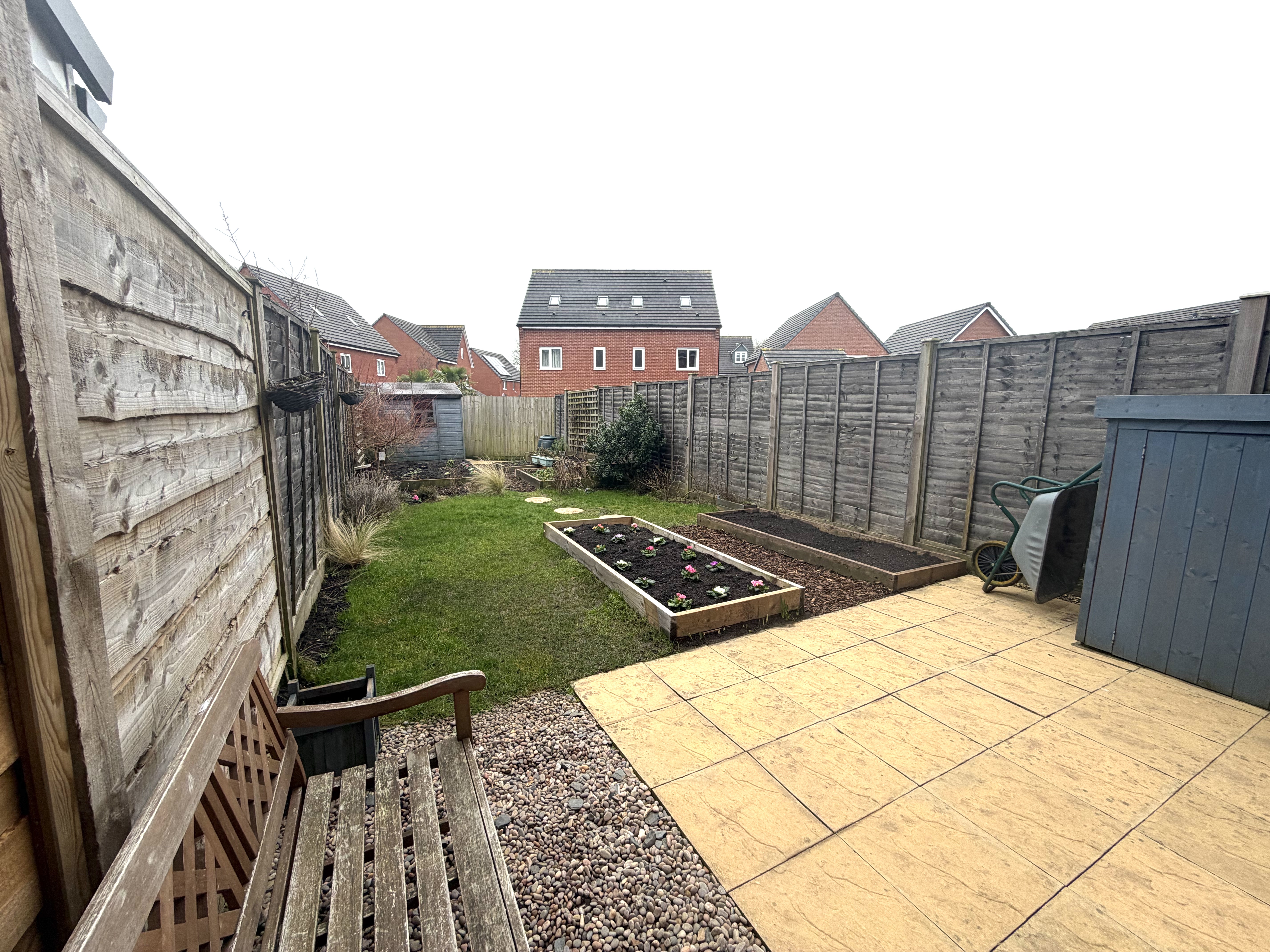 The back garden has area with patio, lawn and with space to grow flowers and vegetables. Two sheds are to be included. Two allocated parking spaces to the side of the house.