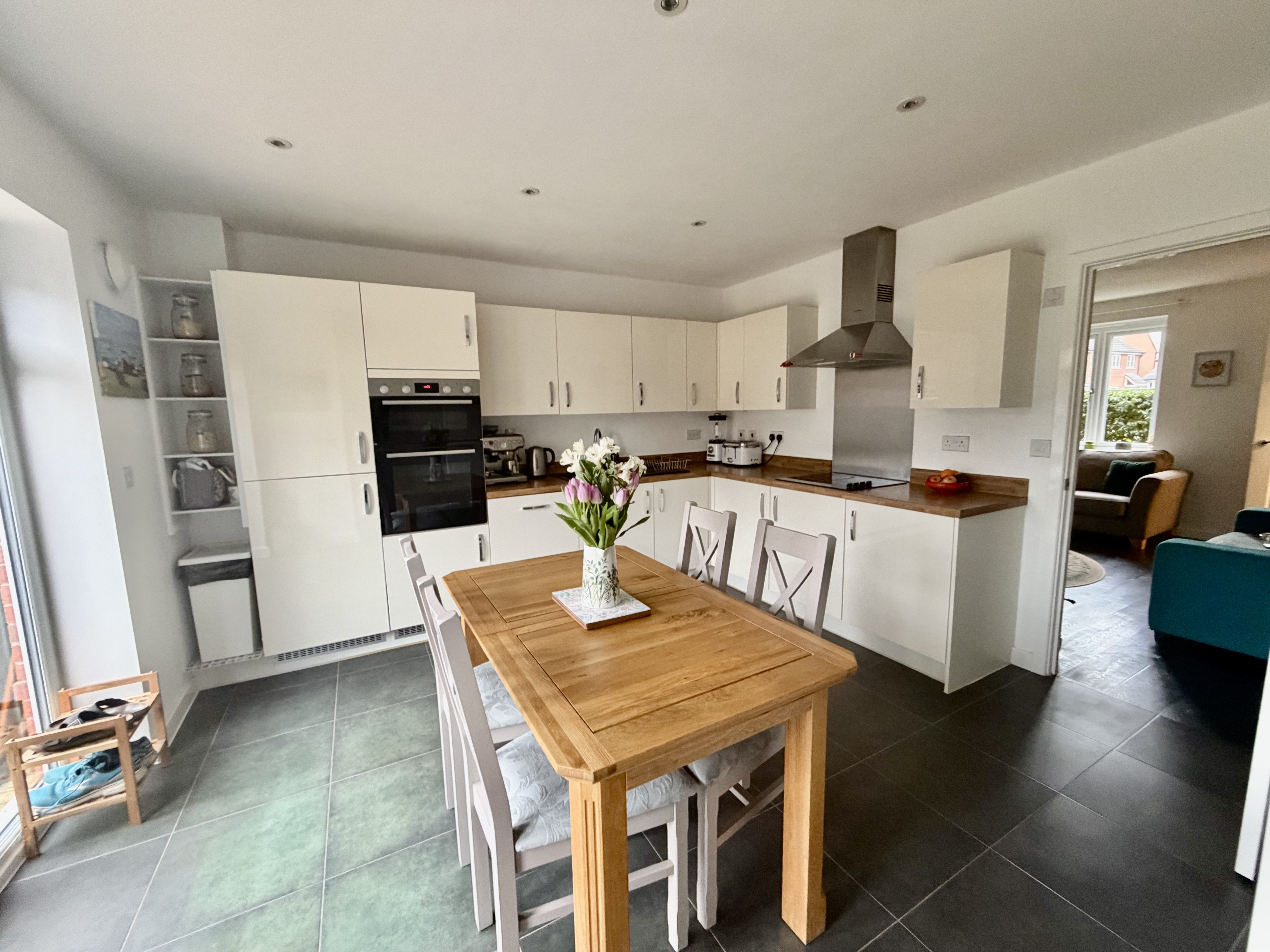 A very spacious lounge with large picture window. Wooden flooring and access to the kitchen. Large under stairs storage area.