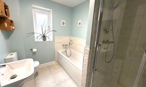 A great size family style bathroom, with sink, WC, bath and separate shower cubicle.