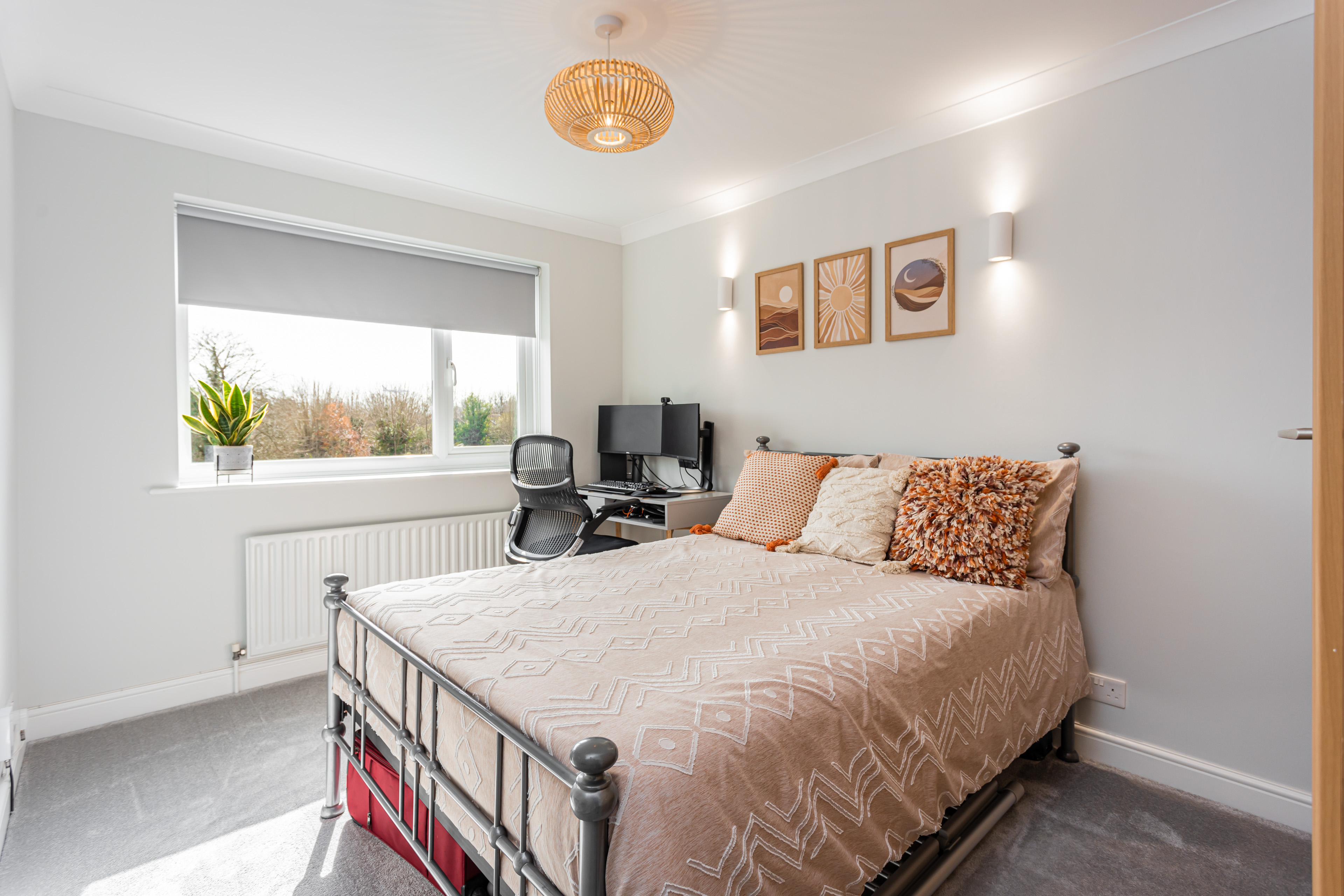 Both bedrooms are well-sized doubles, comfortably accommodating beds and additional furniture. Each room enjoys large windows overlooking the attractive communal gardens, along with built-in wardrobes.