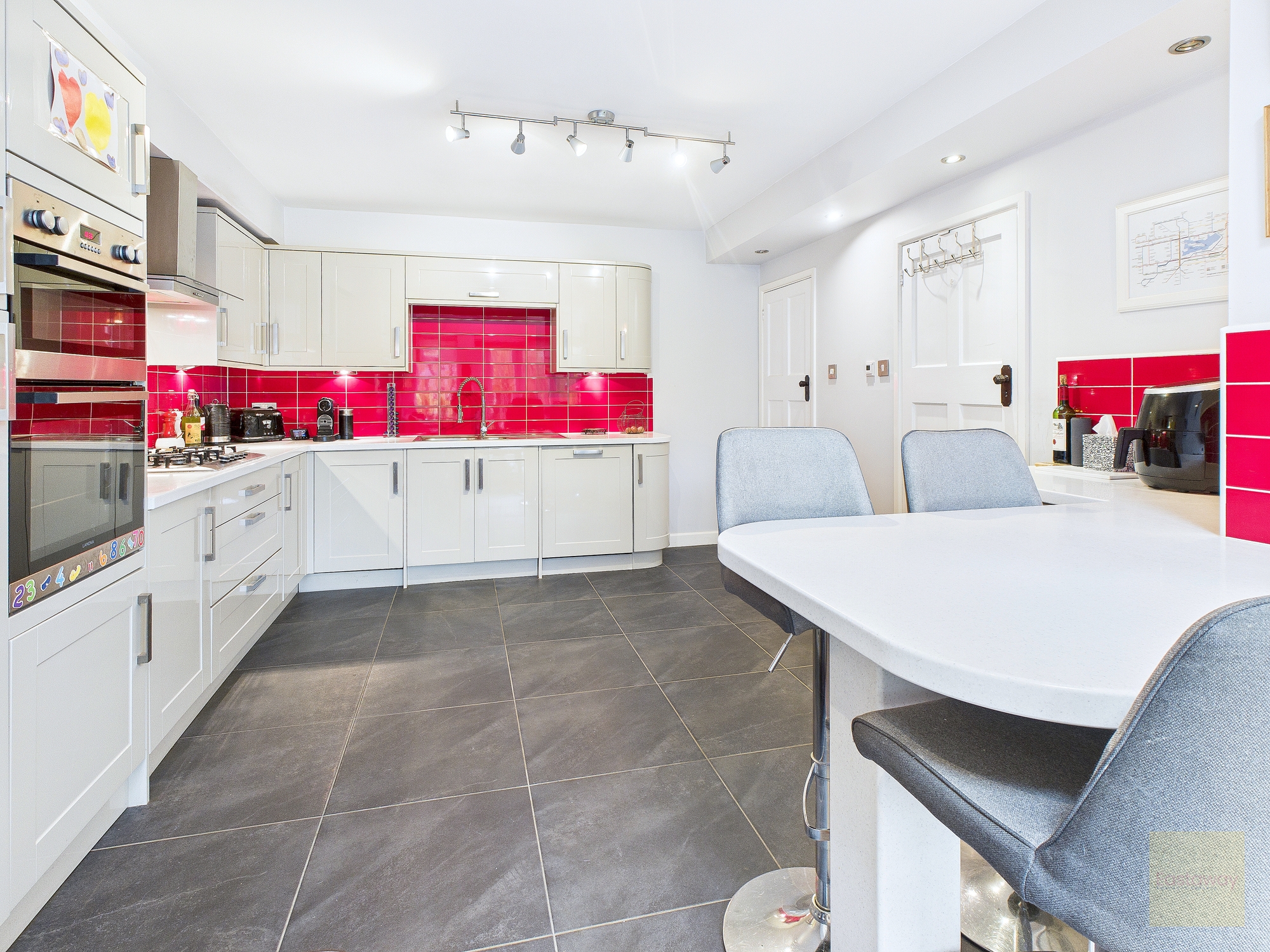 The kitchen and dining area are where this home really comes alive. The extension has created an open-plan layout that connects perfectly to the garden, making it the heart of the home. It’s bright, social and ideal for everyday living. The kitchen itself is beautifully designed with integrated double ovens, gas hob, extractor, dishwasher, fridge, freezer and coffee machine, all neatly built in so the space stays sleek and functional.