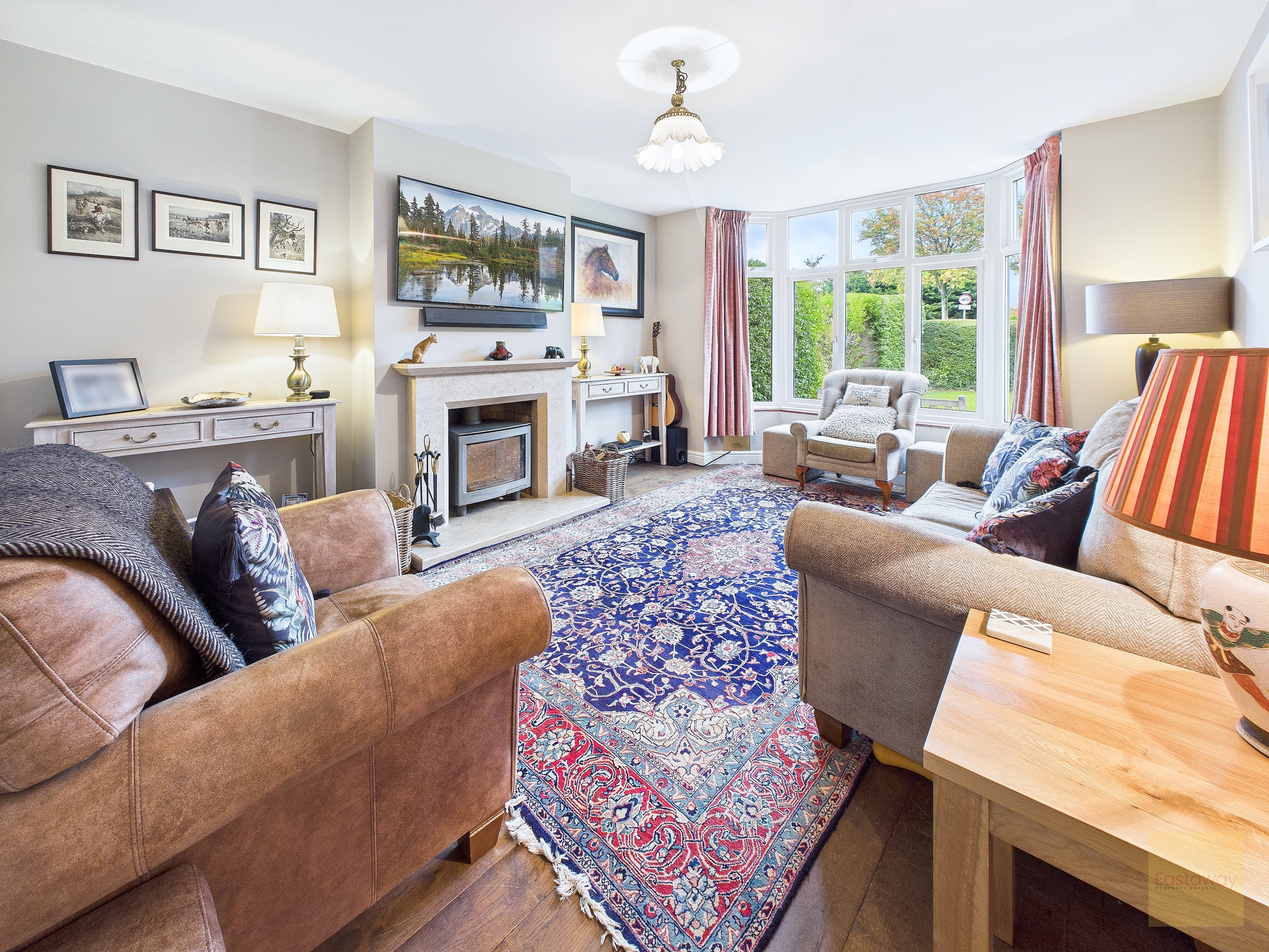 The living room has that timeless 1930s charm, complete with a beautiful bay window that fills the room with natural light and a stone fireplace with a log burner that makes it feel extra cosy through the colder months. It’s the kind of space you can truly relax in, whether you’re curled up with a book, chatting with friends or enjoying a quiet night in.