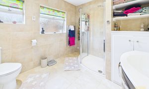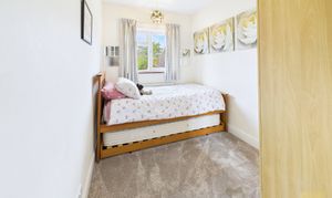 Upstairs, you’ll find two large double bedrooms and a smaller third double, each one comfortable and full of natural light. The family shower room is modern and spacious, finished in soft tones that make it feel calm and inviting.