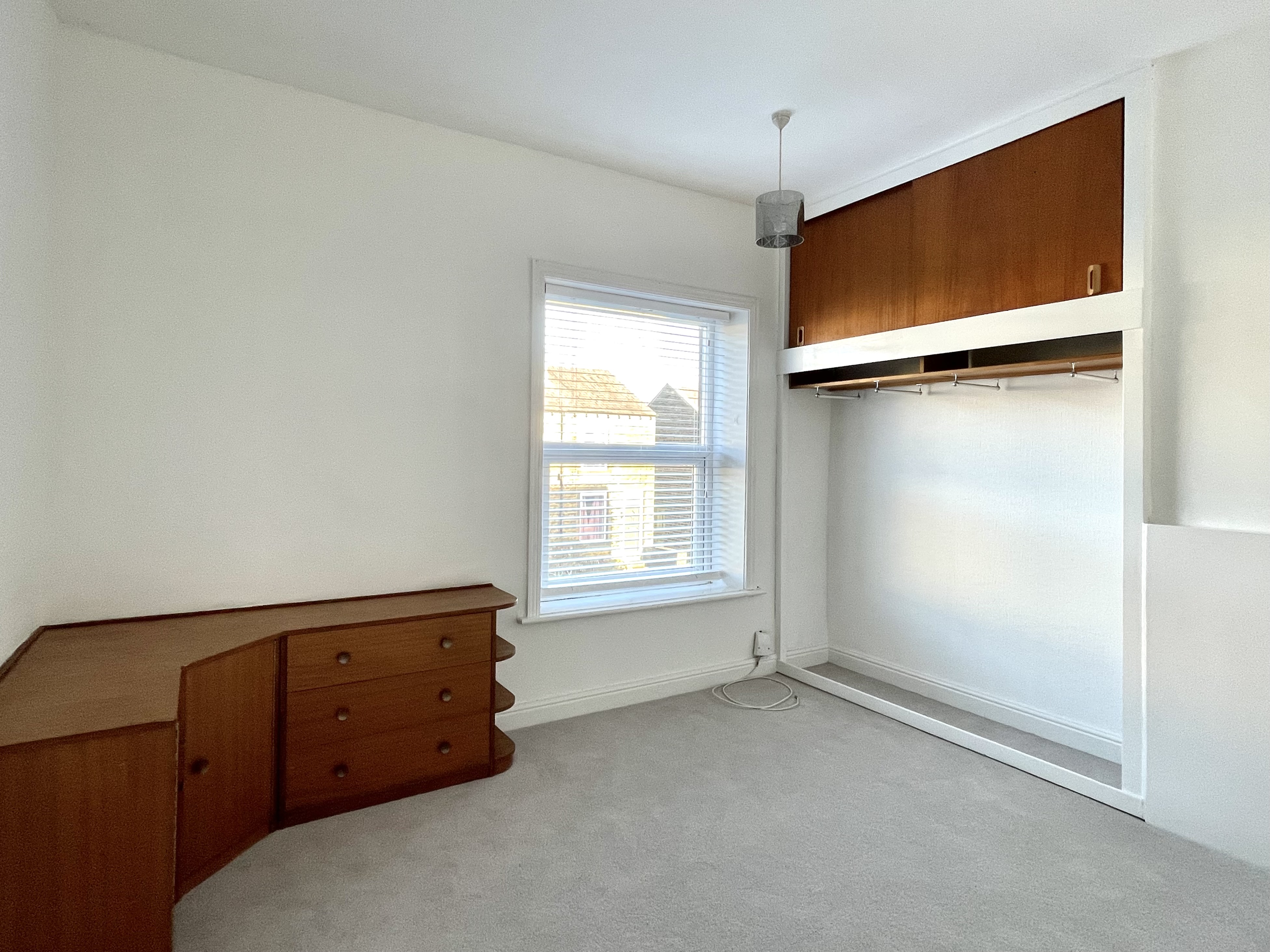 Another good-sized bedroom which overlooks the rear garden. There is crisp and neutral décor with new grey fitted carpet, central heating radiator and a cupboard housing a gas fired central heating boiler.