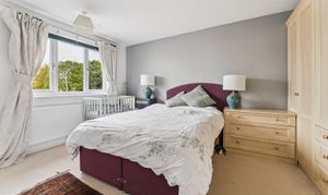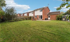 Externally, the home is set back from the road, with off-street parking for multiple vehicles and a substantial garage with an electric door. To the rear, the large and private South East-facing garden offers an exceptional setting for outdoor living, with mature boundaries and room to extend or landscape further.