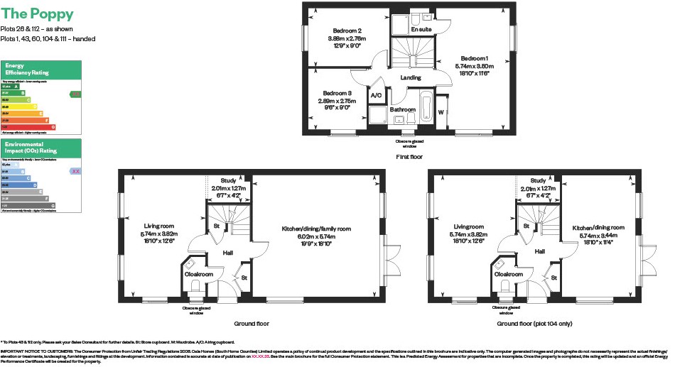 The U-shaped staircase leads up to the three well-proportioned bedrooms. The spacious main suite encompasses its own en-suite with built in sliding door wardrobe. Whilst the family bathroom boasts from both a bath and a separate shower cubicle. The driveway to the Poppy accommodates two parking spaces.