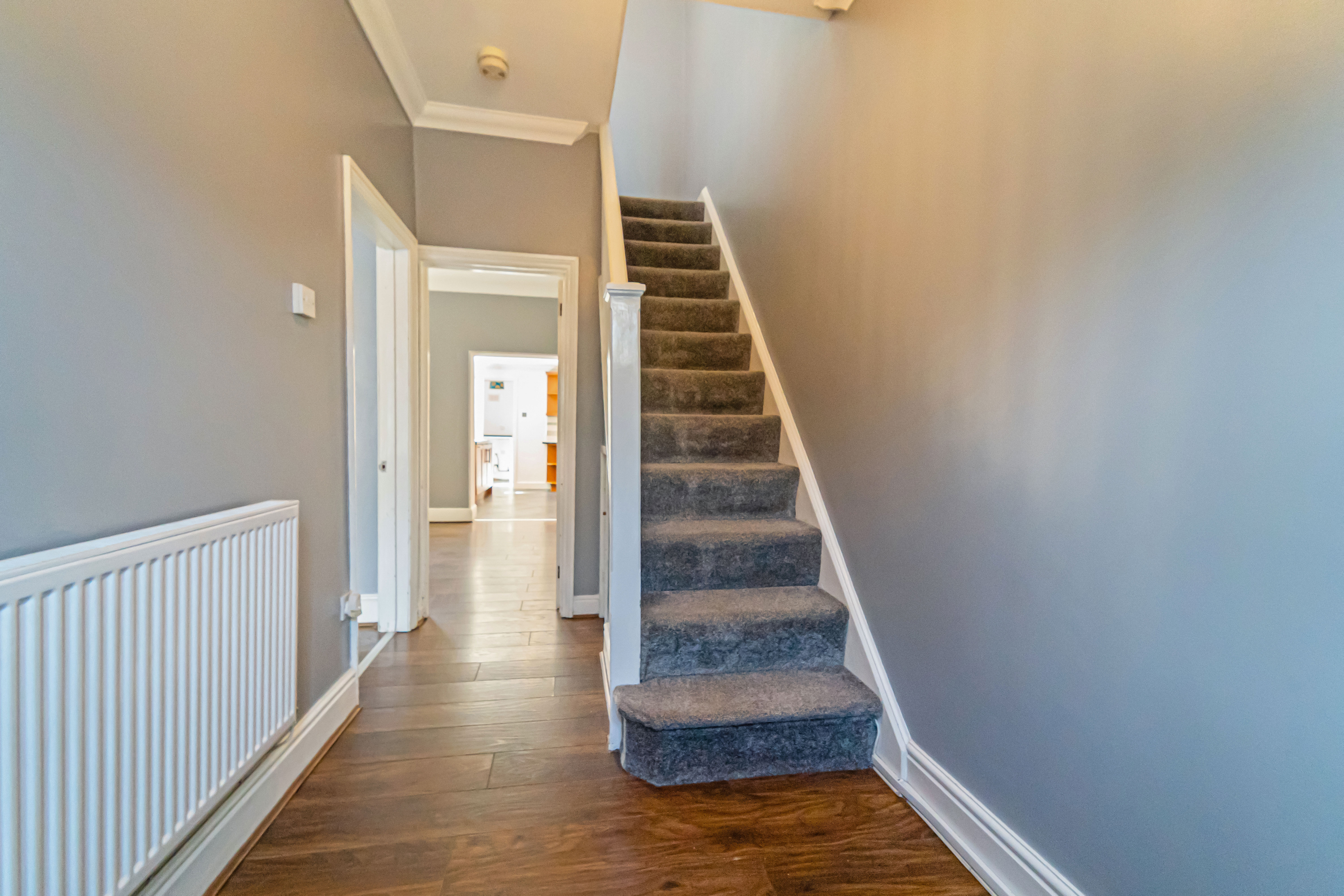To the first floor we have the three bedrooms, two of which are well sized double bedrooms while the third is a comfortable single, which has great potential for a walk in wardrobe or even a home office. Both of the double rooms are well lit, with the front facing room enjoying the gorgeous bay windows from the floor below, while the other double bedroom features a useful fitted wardrobe. The second bathroom of the property is located from the landing, featuring a bath suite and overhead shower.