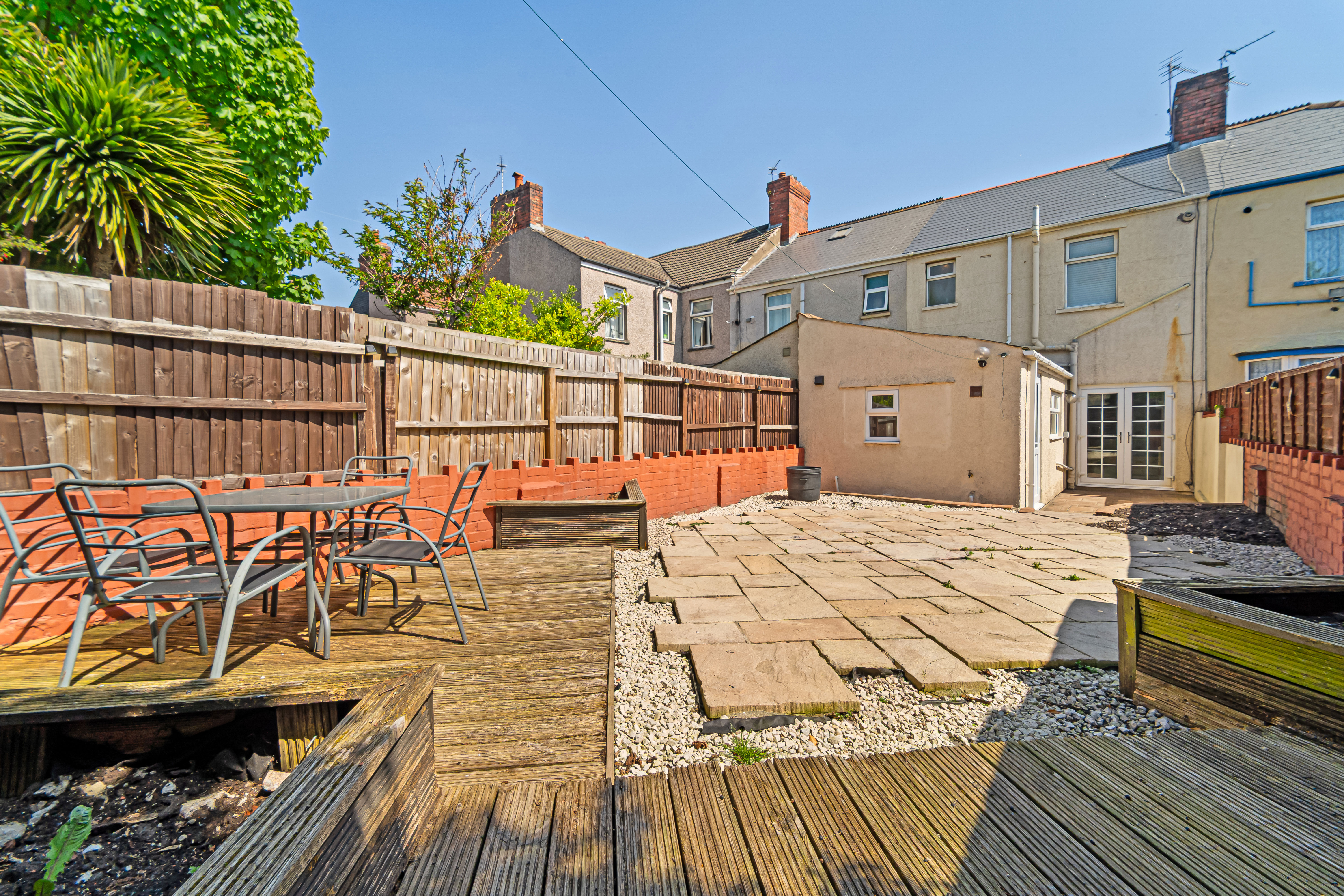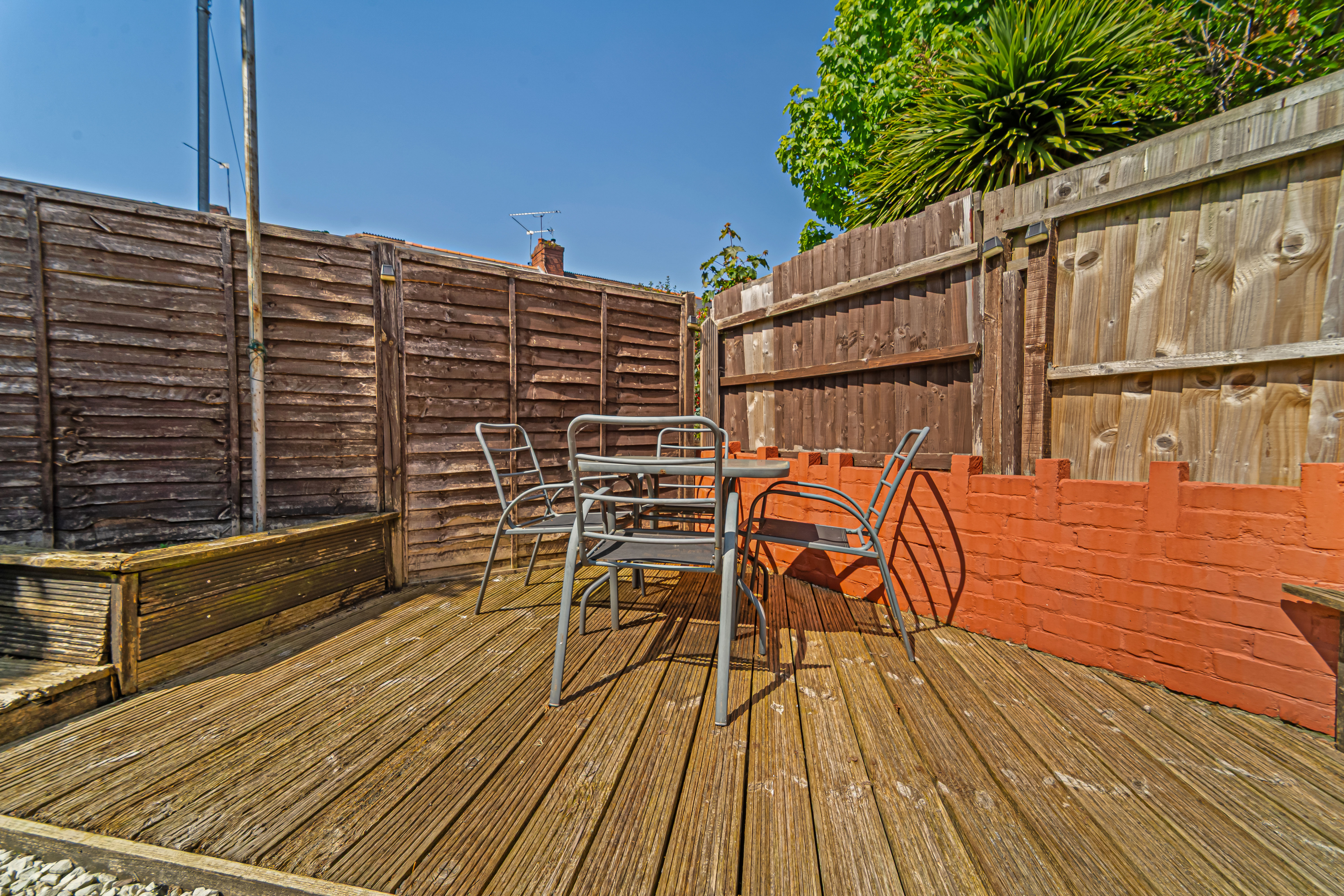 Stepping outside we have the fully enclosed rear garden, which consists of a sizeable patio accented by a wooden deck, providing an abundance of outdoor space, perfect for relaxing in the sunshine, or welcoming guests for tea/coffee or dining al-fresco style. On road parking can be found to the front of the house.