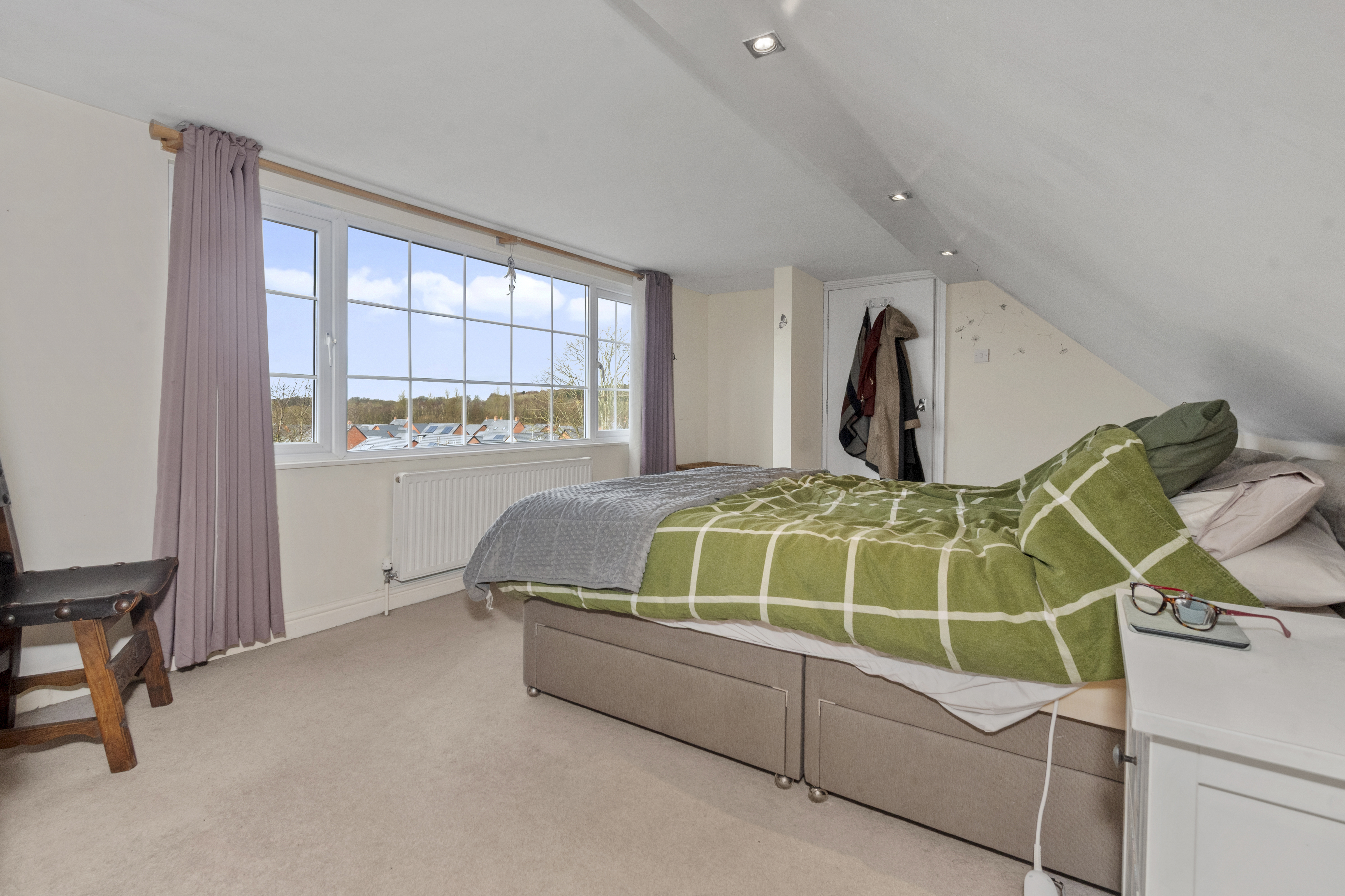 - Three well-proportioned bedrooms and family bathroom to the first floor, plus a stunning balcony with treeline views — an ideal spot to relax