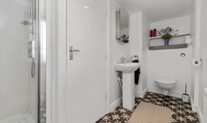 Occupying the entire top floor is an impressive master suite, featuring a generous bedroom with beautiful rear-facing views, excellent storage, and a contemporary en-suite bathroom, creating a private and tranquil retreat.