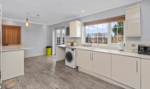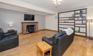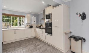 Set back from the road, the home benefits from a generous driveway providing off-road parking for multiple vehicles. Upon entering, you are welcomed into a bright entrance hall, with access to a useful cellar, ideal for storage. The ground floor offers a superb layout for modern family life, featuring a spacious lounge with a log burner, creating a warm and inviting focal point, alongside a generous downstairs WC and a separate study, perfect for home working or a quiet retreat.