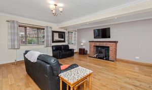 - Spacious lounge featuring a log burner, creating a cosy and inviting living space
