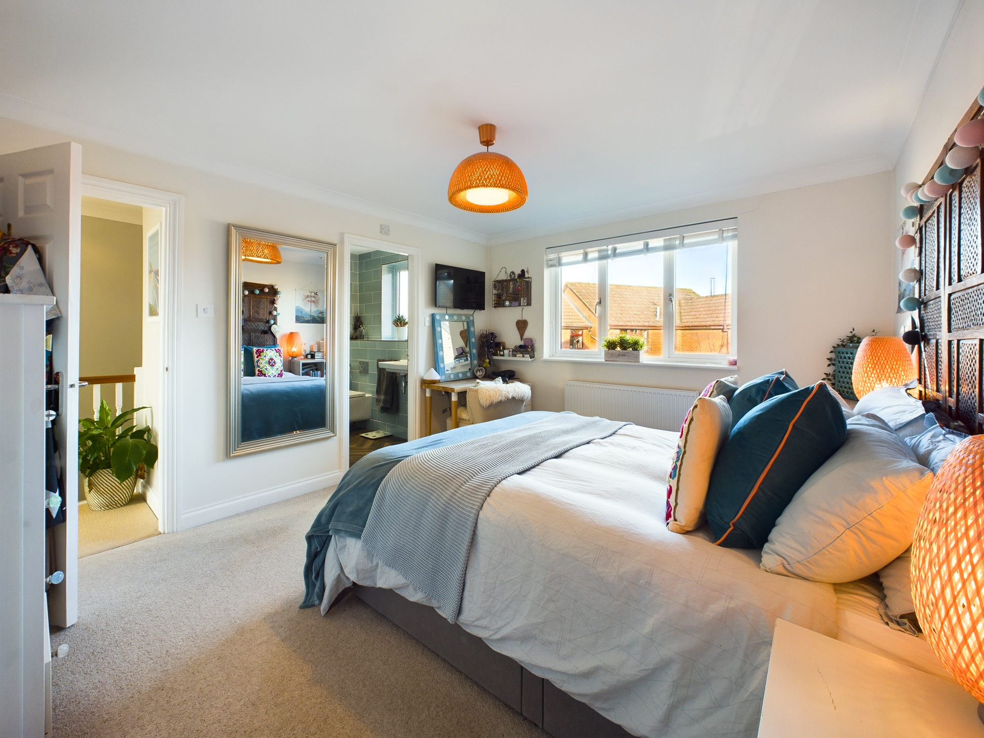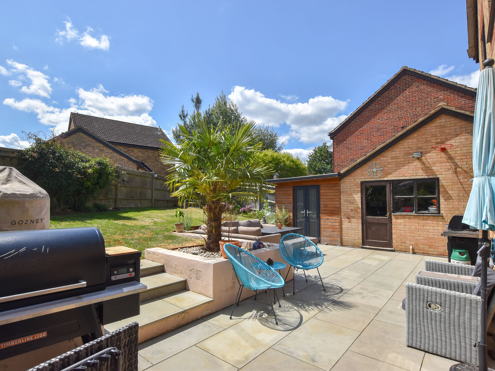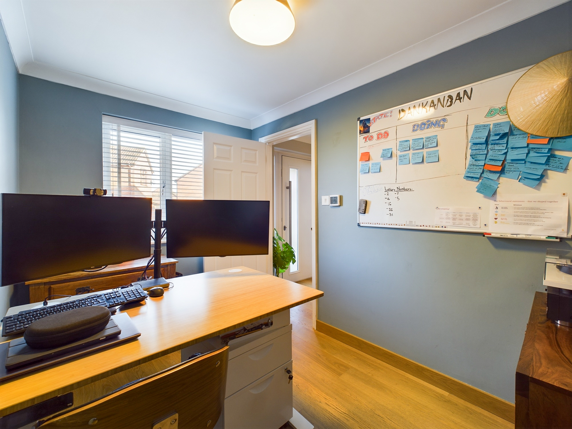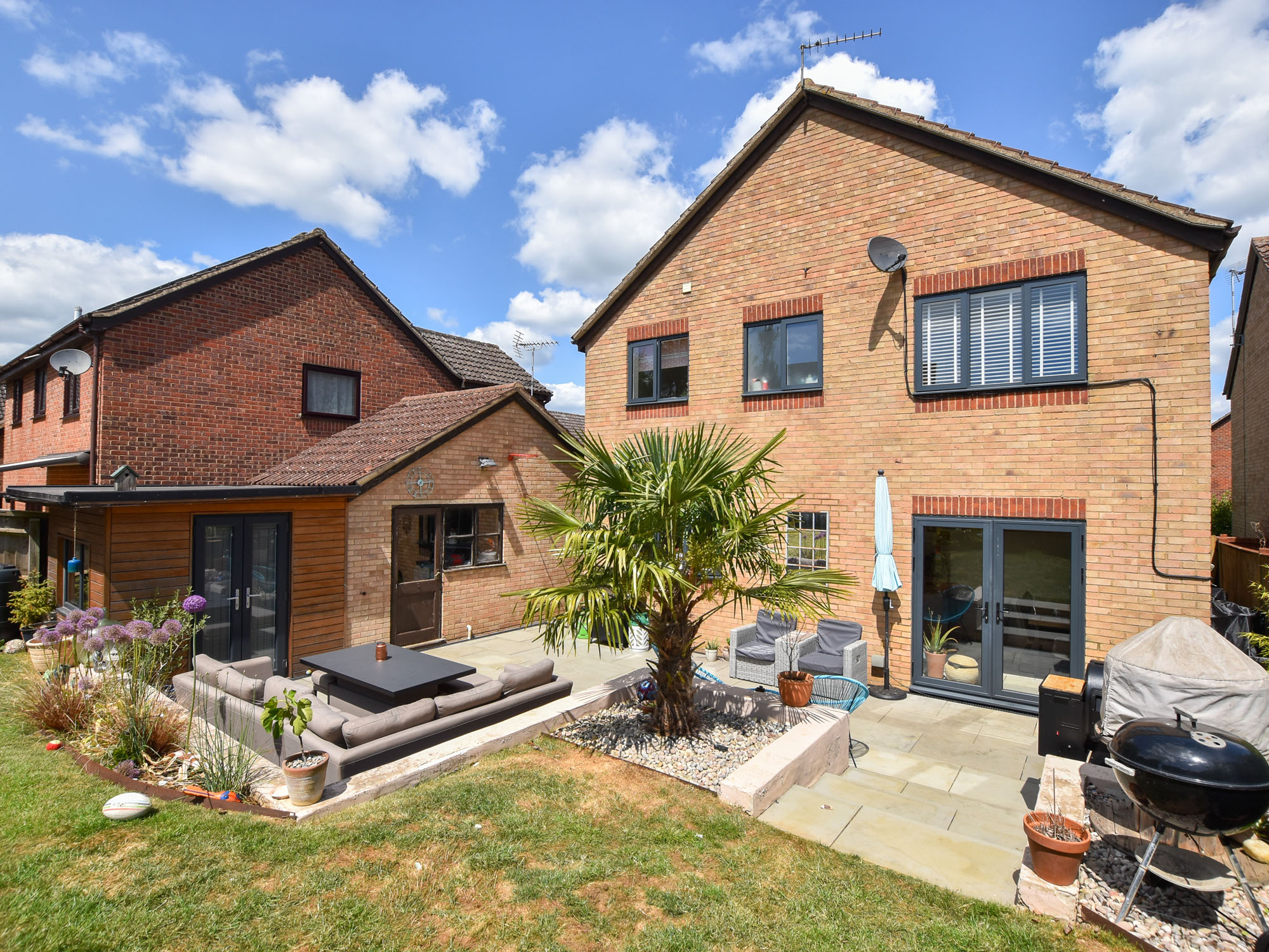 This beautifully presented detached family home, offers versatile accommodation throughout. The ground floor features an entrance hall, kitchen/dining room with appliances included, sitting room, separate study, and a cloakroom. Upstairs are four bedrooms all benefitting built-in wardrobes, a family bathroom and an en-suite shower room to the master. Outside the property boasts a south-westerly facing enclosed garden with a patio, lawn, mature planting, outdoor sockets and tap, side access, and a garden office. Single garage and a resin driveway.