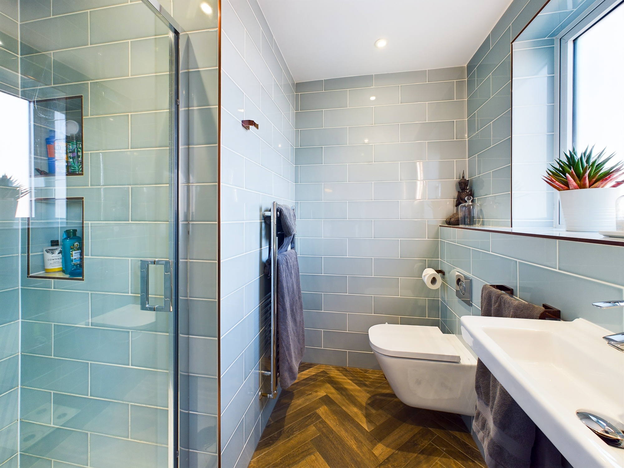 Fitted with a three-piece suite comprising a shower cubicle, wash basin, fitted heated and illuminated mirror and a W.C. Window to the front. Extractor fan and shaver point.