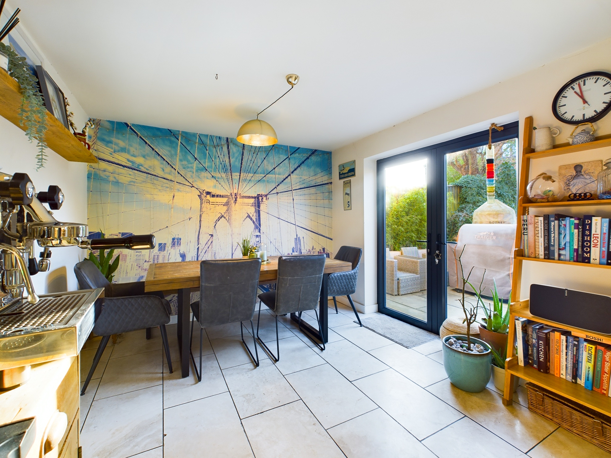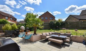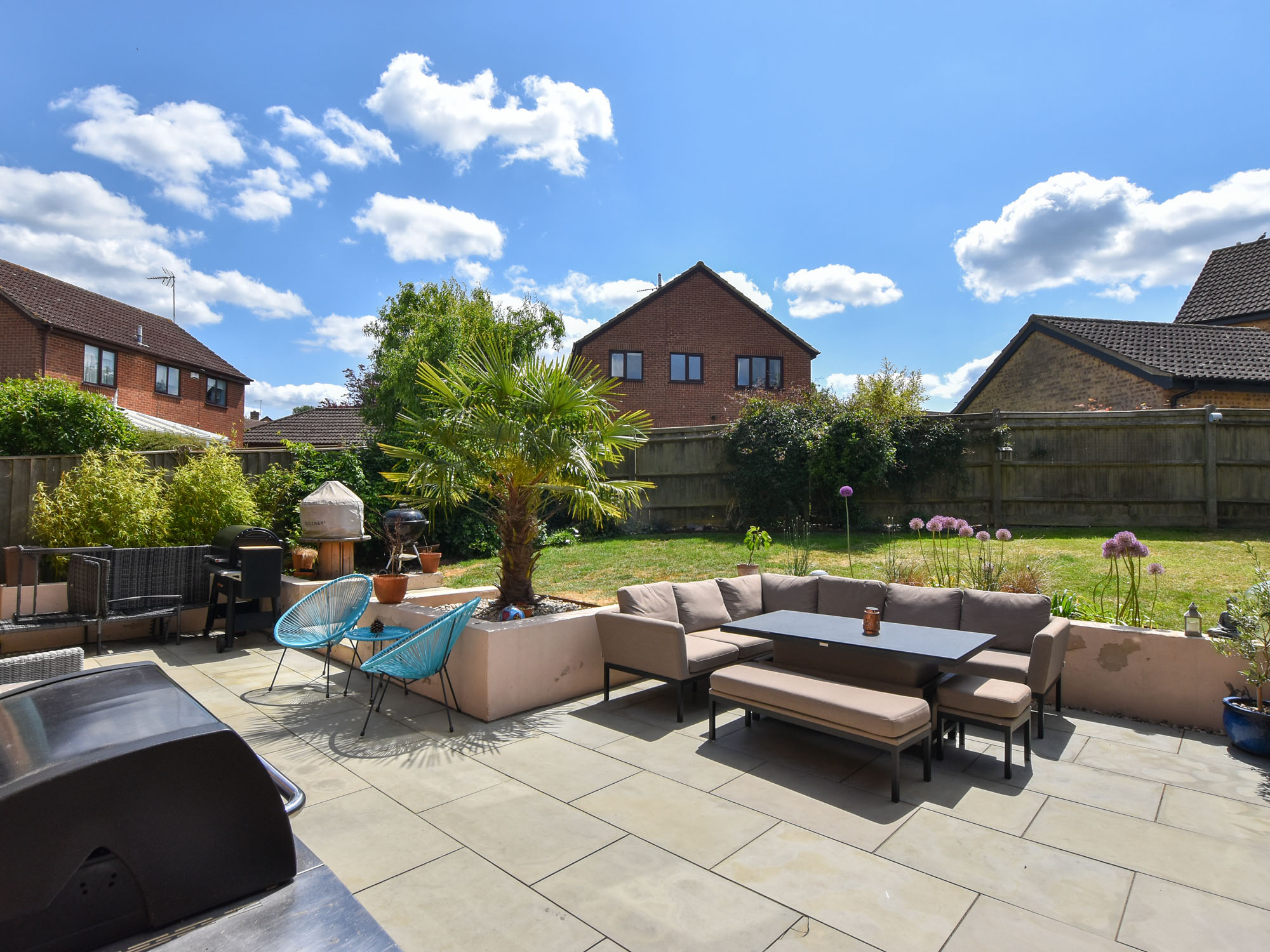 Landscaped in 2019, the fully enclosed rear garden boasts a south westerly facing aspect and features a large patio seating area, steps rising to a lawn, side access as well as outdoor sockets and tap.