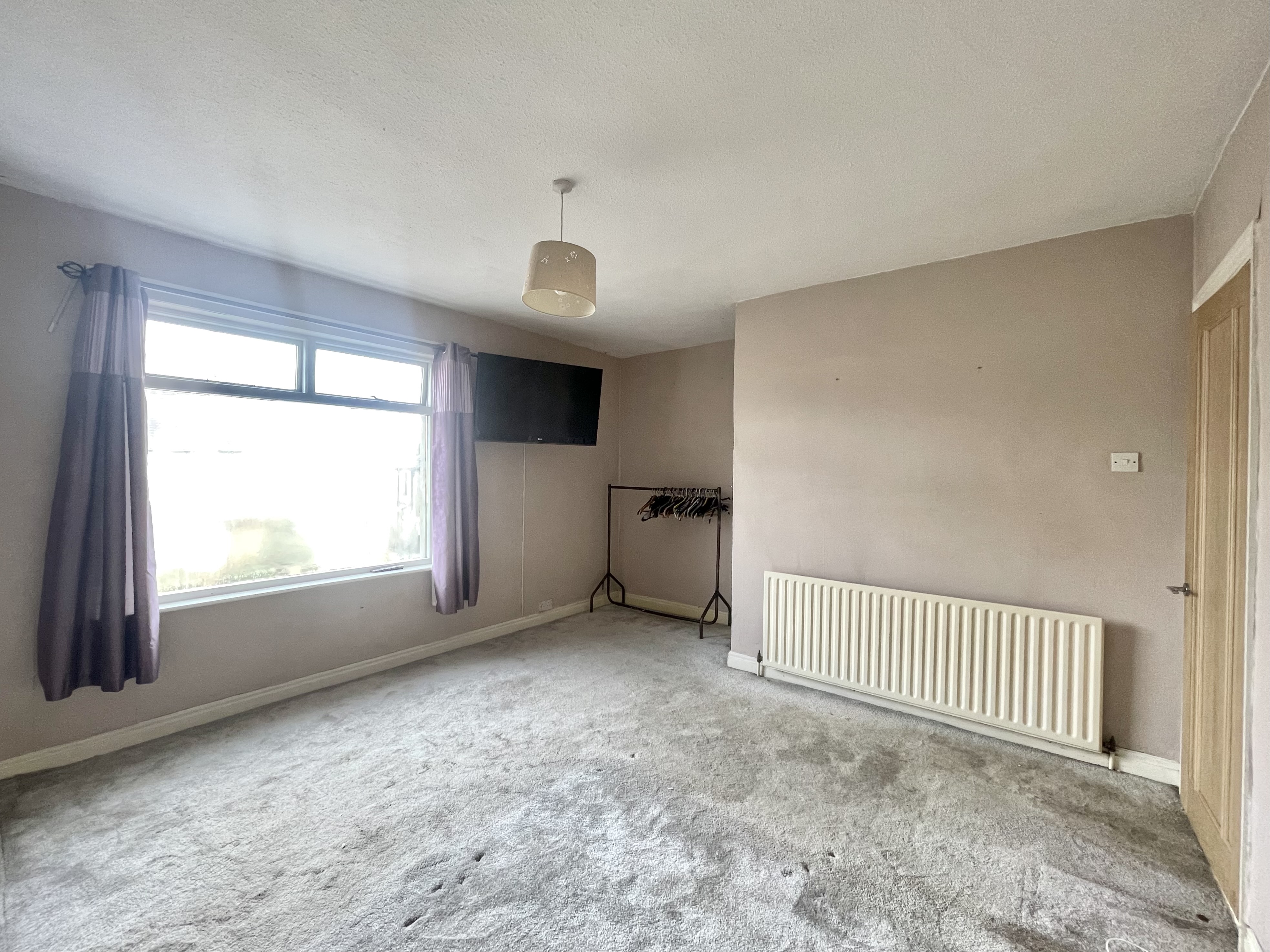 A good-sized double room with a timber and sealed unit double glazed window looking out to the front, there is a ceiling light point, central heating radiator and chimney breast.