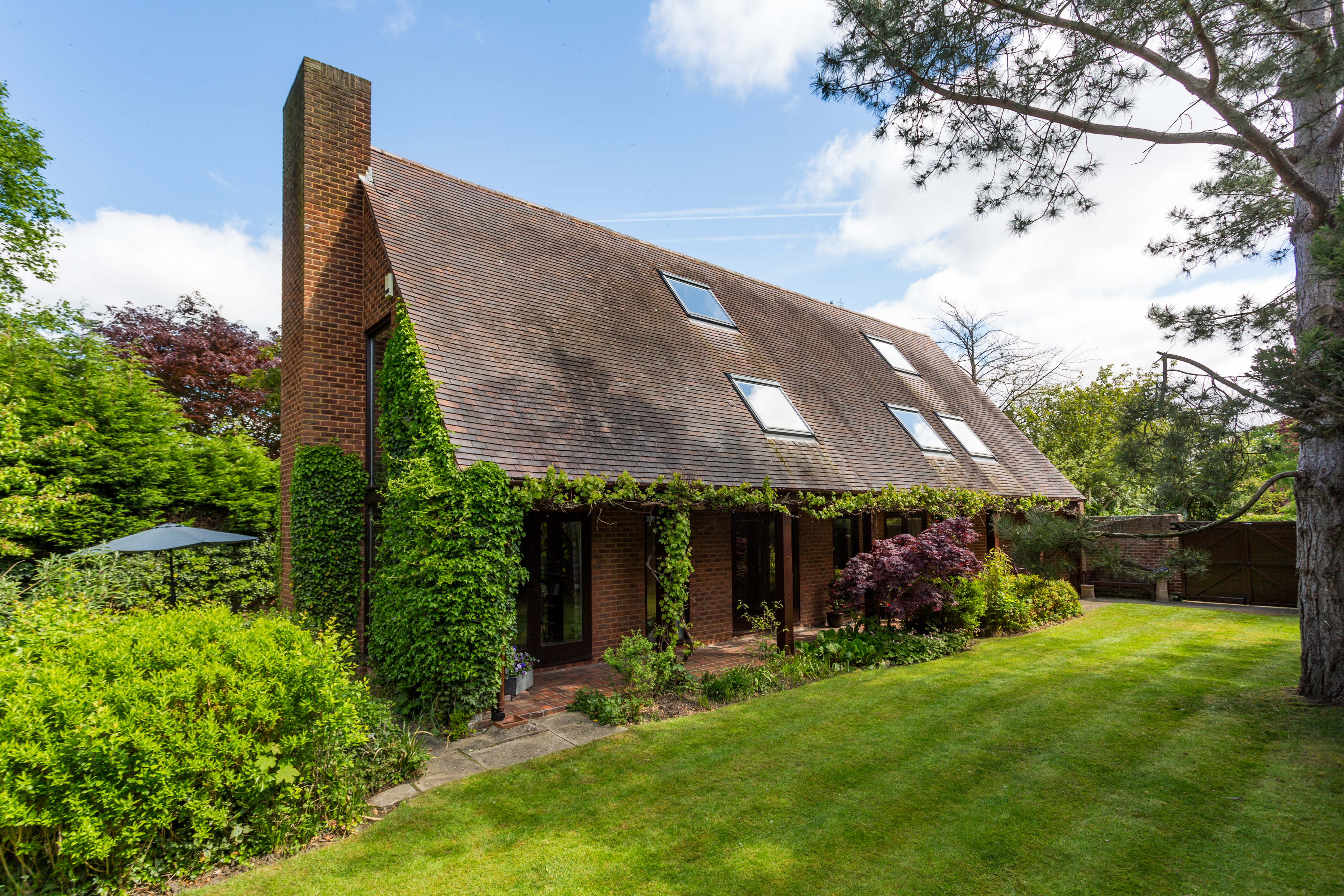Saxon House is a striking, individually designed home with a fascinating architectural story at its heart. Conceived to reflect the proportions and simplicity of a traditional Saxon barn, hence the name, the property was intentionally designed with clean external lines, an unbroken roof form and understated materials. A modest exterior that quietly conceals a dramatic and light filled interior.