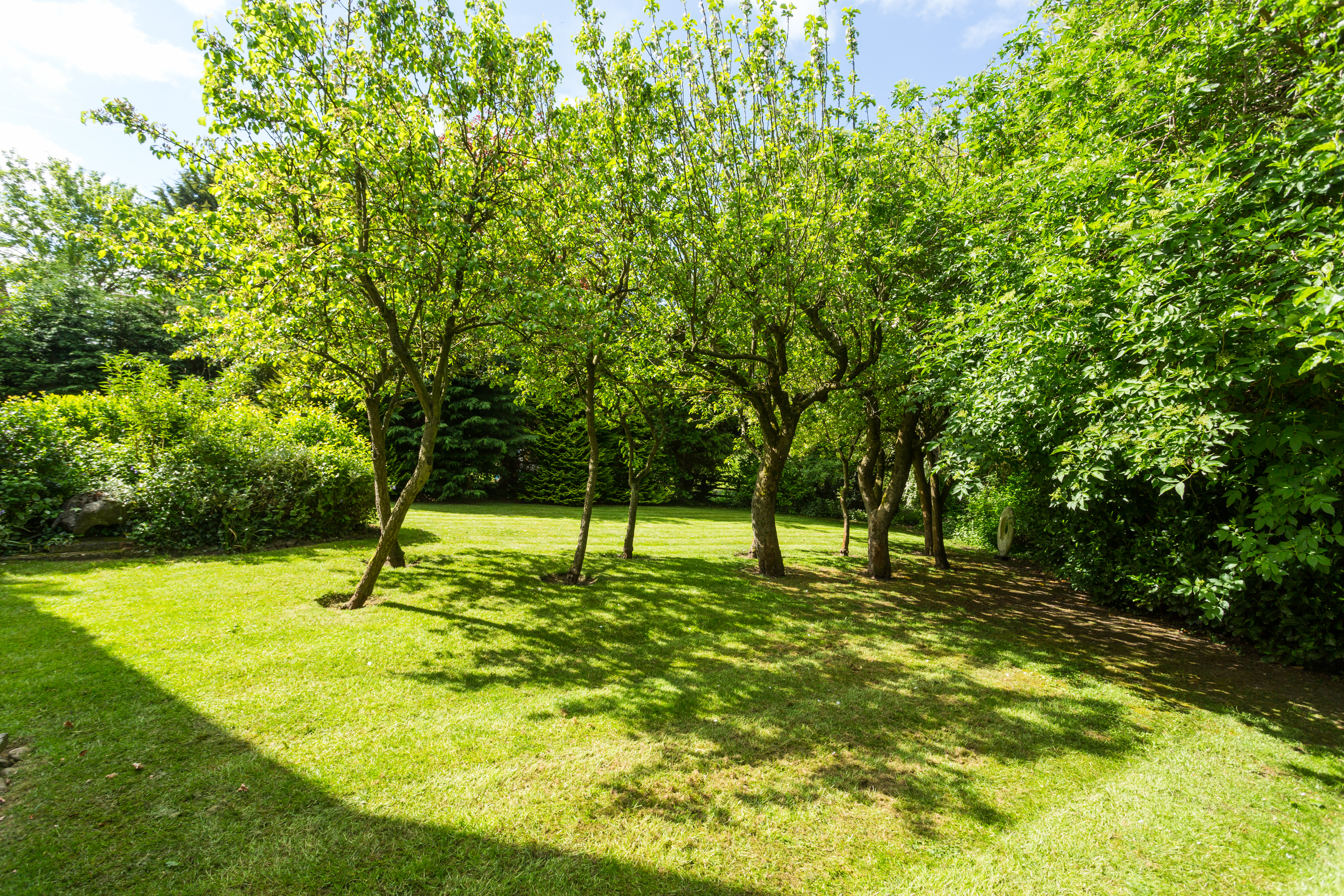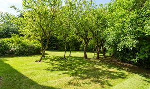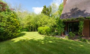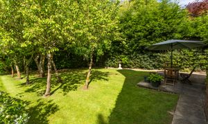 Climbers and creepers soften the porch, while a variety of specimen trees, an orchard and well-maintained level lawns create structure and interest throughout the space. True to its position on Marsh Lane, the lower garden gently tapers away towards the stream at the rear, blending naturally into the surrounding landscape. It is worth noting that many of the gardens within this village are designed in this way, with homes sensibly positioned on higher ground, well away from any flood risk, and land that gradually transitions into natural run-offs. These watercourses form part of the village’s character, flowing quietly through this particularly picturesque setting and inviting a unique range of wildlife.