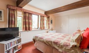 The main bedroom is located to the east gable and enjoys charming views of the village street scene, along with an abundance of bespoke storage. It is ideally positioned adjacent to the main house bathroom.
