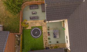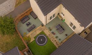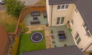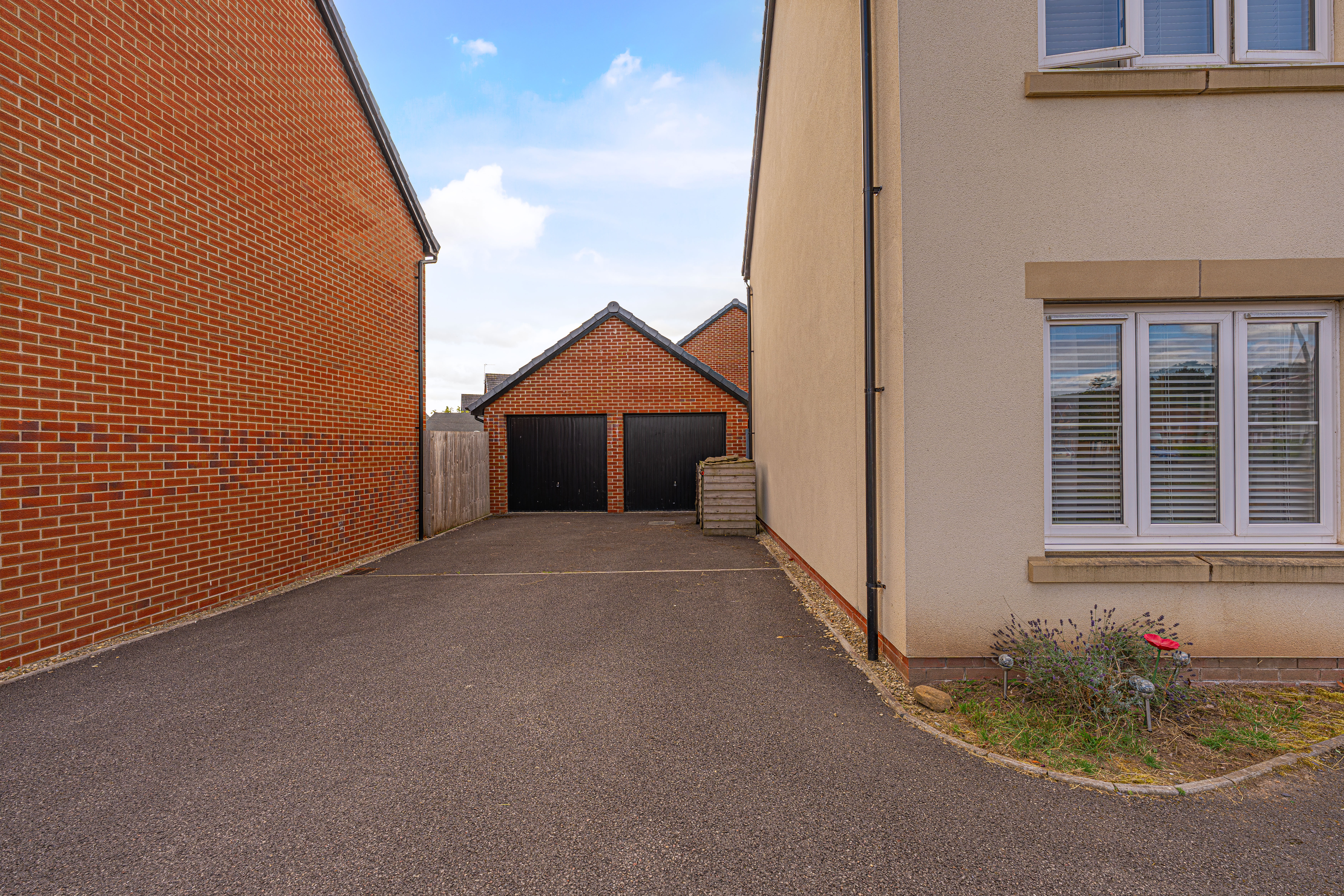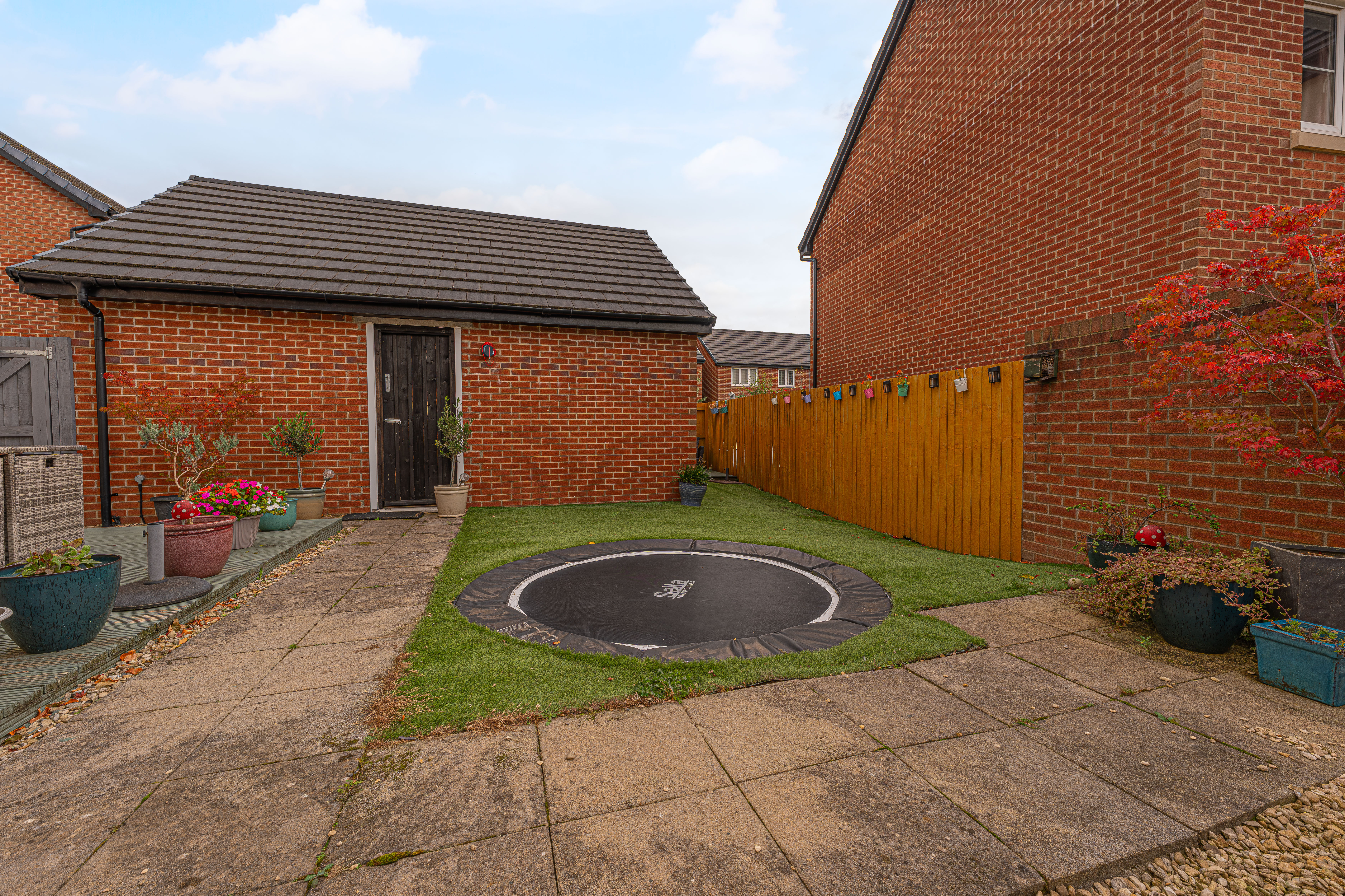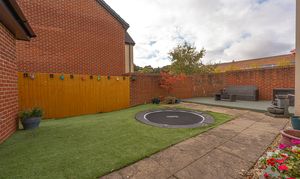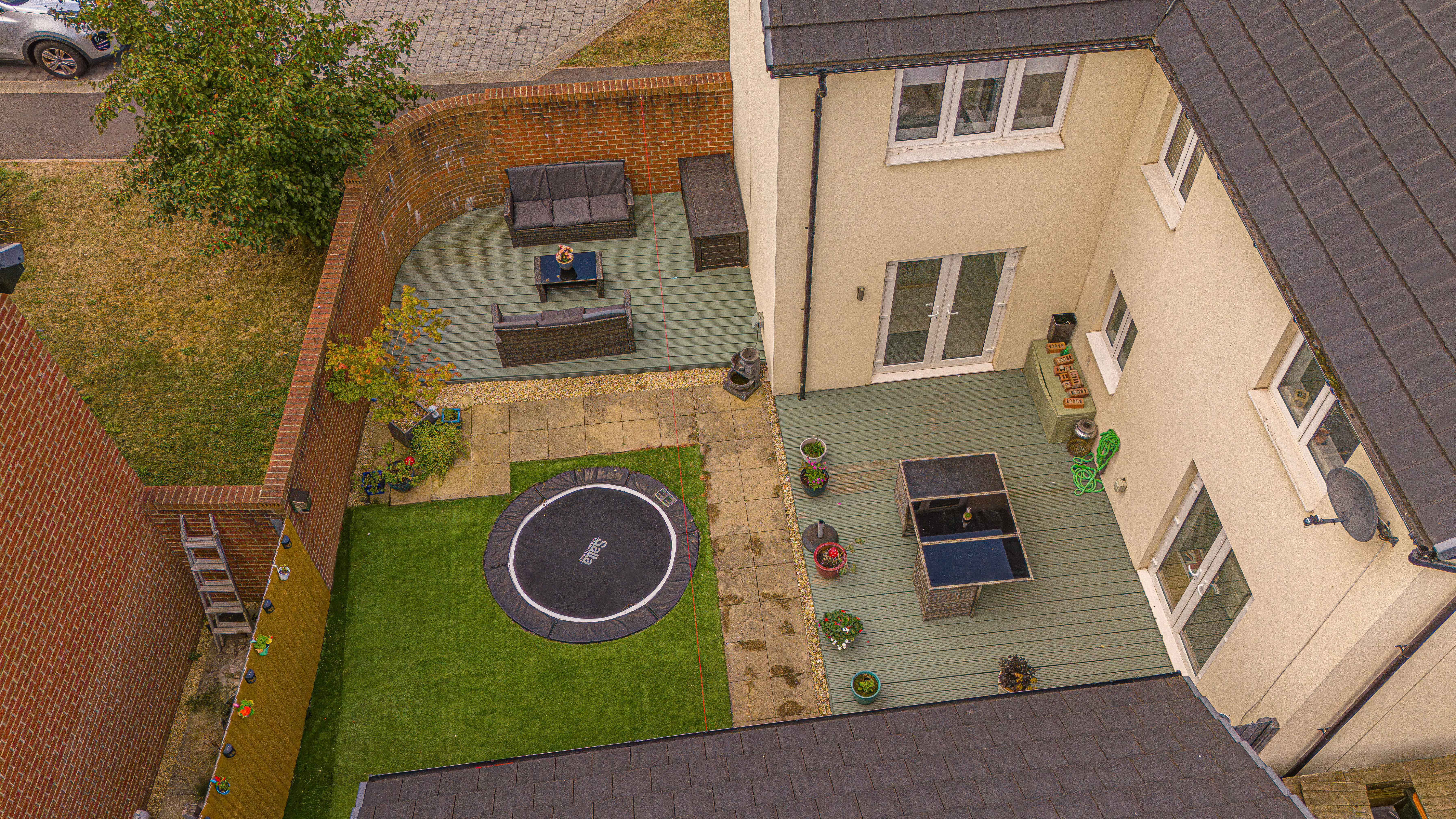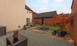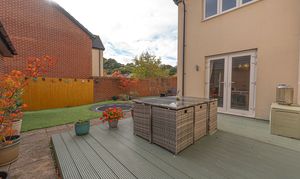 Stepping outside we have the gorgeous south facing rear garden, comprised of a artificial lawn, patio and three decked spaces, ensuring a great deal of outdoor space whilst highlighting a wonderfully low maintenance design with multiple electrical points and outside taps. The garden is fully enclosed and enjoys a great deal of sunlight, and is perfect for entertaining guests over tea/coffee, and dining al-fresco style. A side gate from the garden takes us to the driveway at the side of the house, which can park at least 5 vehicles, with the garage to provide additional parking and overflow storage space with garden and driveway access. Jubilee Park also has a lovely linear path and excellent walks nearby by. There are two children’s play areas perfect for growing families.