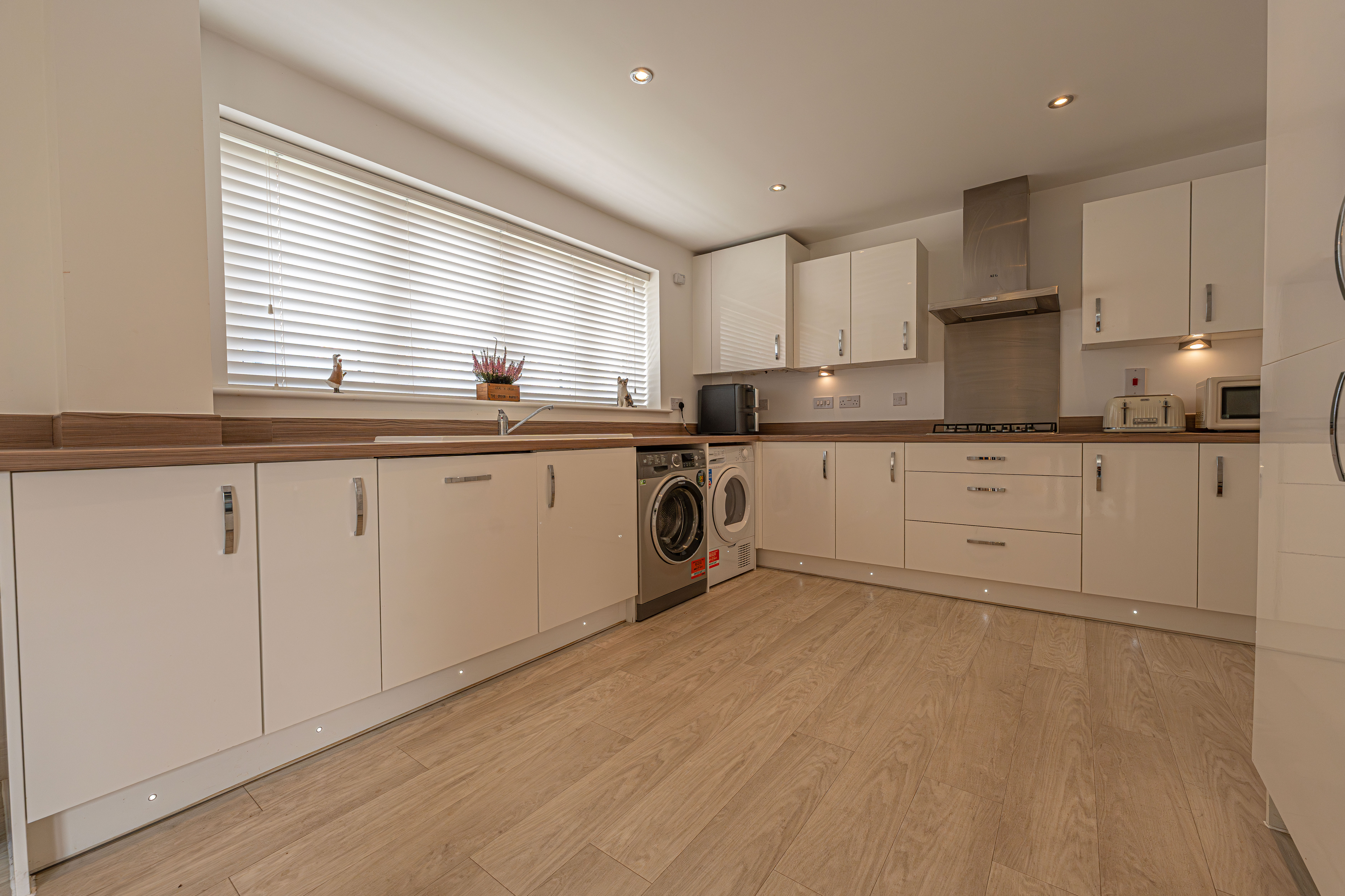 We enter this property through the front, where we are welcomed into the living room found at the side of the house, flooded by natural light through multi-aspect windows including double doors that open to the garden. From the hallway we can an find a helpful under stairs closet and a W.C, as well as a second living room which is perfect for a snug lounge, home office, or a games room, highlighting a great deal of versatility for the property. At the rear of the house we have the fantastic open plan kitchen and diner, which also enjoys a great deal of light from several windows, and another set of double doors that open outside. The kitchen is open and breathable, with a great user-friendly design, and offers an abundance of storage space, in addition to several integrated appliances to make cooking and cleaning easy.