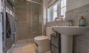 Ascending upstairs we have the four bedrooms, all of which are well sized double rooms, with two of the bedrooms featuring en-suite shower rooms, while the family bathroom can be found from the landing, fitted with a bathtub. One of the en-suite rooms also has the added benefit of a fitted wardrobe for optimal storage space, while an airing cupboard can also be found from the open hallway. The numerous bedrooms make this property a perfect option for a growing family, and offer great flexibility for repurpose to suit the needs of any family. Access to the partially boarded attic is provided with a pull down wooden step ladder.