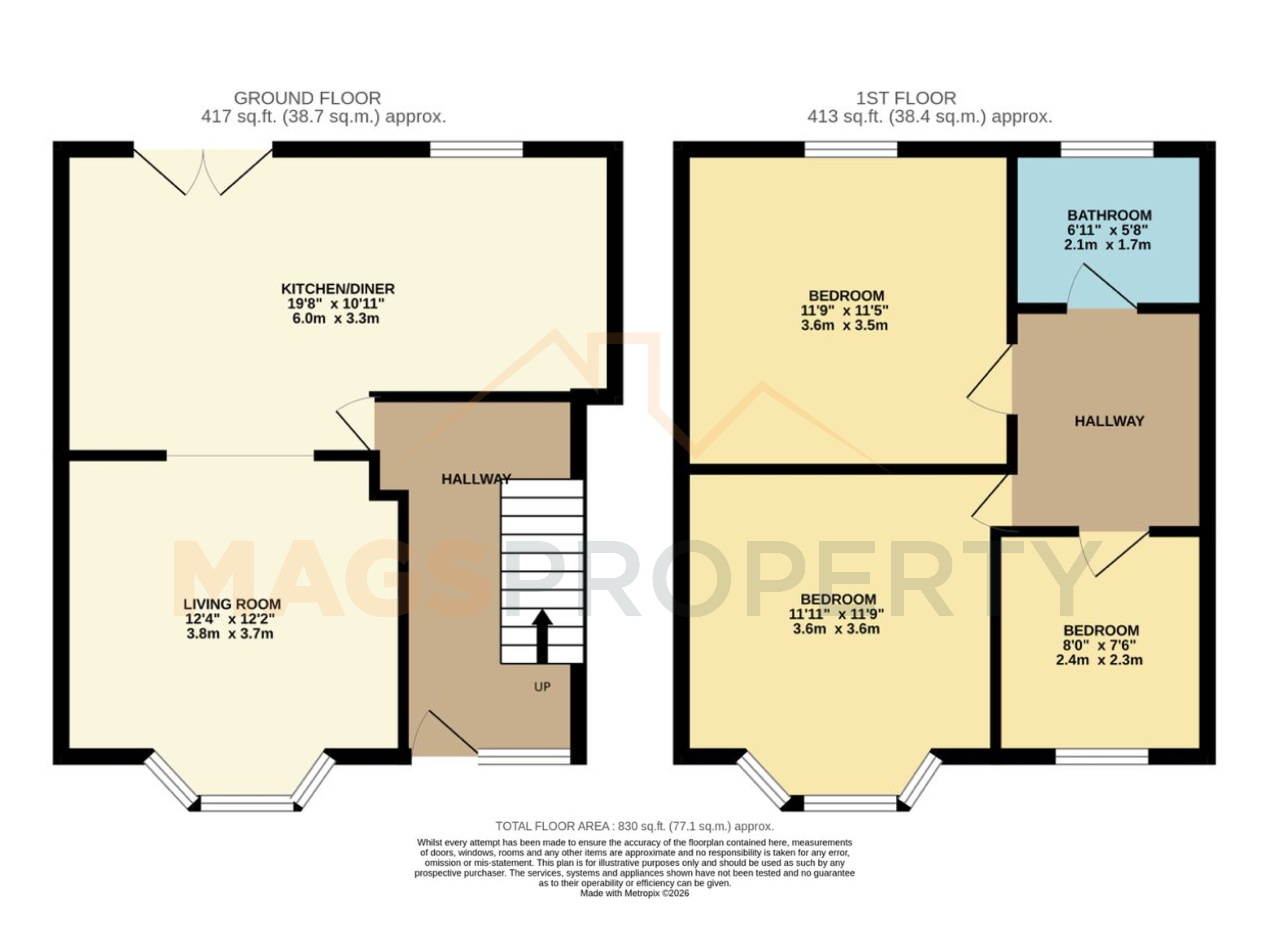 - Approx Sq Feet: 830 sqft