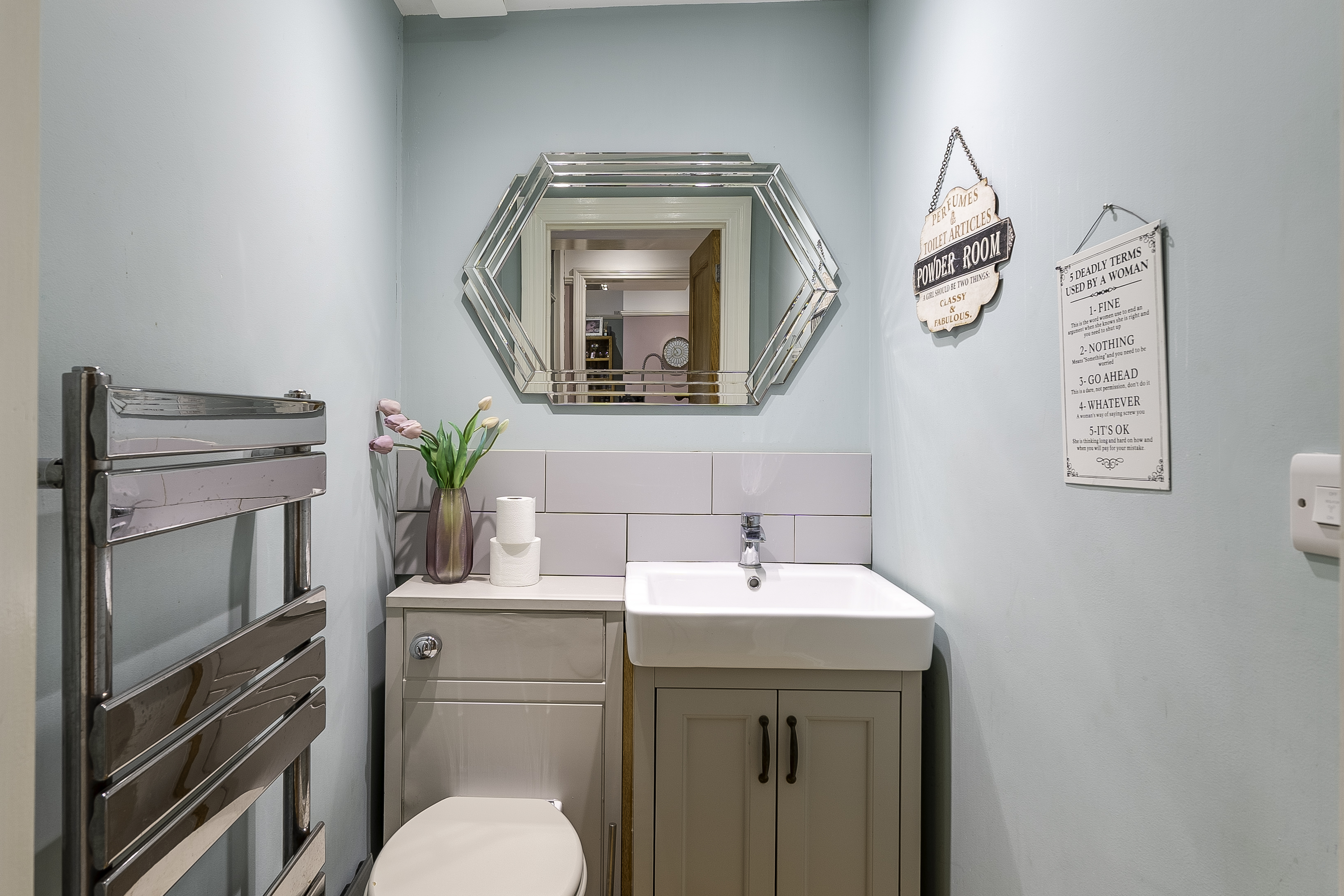 The ground floor further benefits from a well-appointed study, a convenient cloakroom, and a utility room with garage storage to the front of the property, offering ample storage solutions.