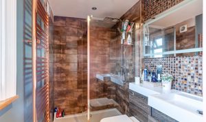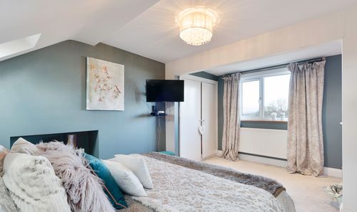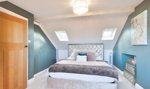 The first floor houses three generously-sized bedrooms, alongside a family bathroom, offering comfort and practicality. On the second floor, there is a stylish bedroom that comes with an en-suite bathroom and built-in storage, creating a private retreat with serene park views.