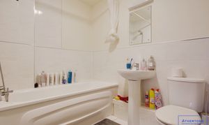 Both bedrooms are well-proportioned doubles. The bathroom presents a matching three-piece suite comprising a bath with shower attachment, wash hand basin, and WC.