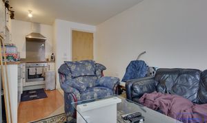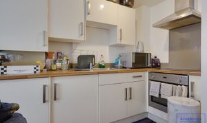 Entered via a communal front entrance, stairs rise to the first floor where you’ll find this inviting apartment. The dual-aspect, open-plan living area feels bright and airy, offering plenty of space for comfortable seating and relaxation. The fitted kitchen features a matching range of base and wall units, generous work surfaces, and an inset sink. Integrated appliances include an electric hob, oven, low-level fridge, and washing machine.