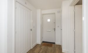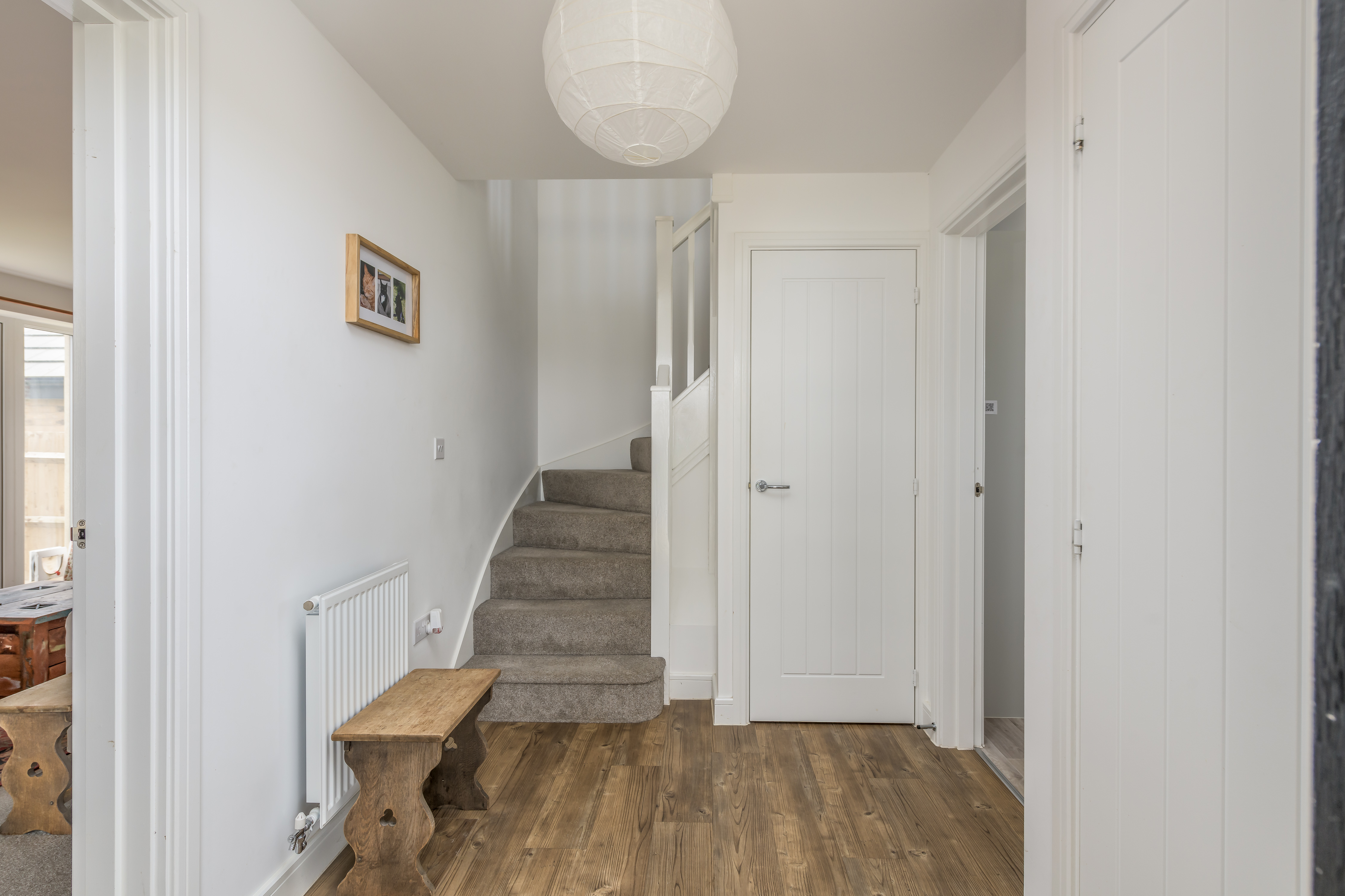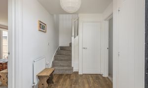 The adjoining utility has an integrated washing machine and shelving for a tumble dryer, keeping the noisier appliances separate from the social space. For storage, the utility affords room for the hoover, airer and ironing board, while a deep understairs cupboard is handy for coats and shoes. There’s a slim cupboard by the front door, and an airing cupboard on the landing. The loft could be boarded for more substantial storage, especially if the garage is needed for vehicles.
