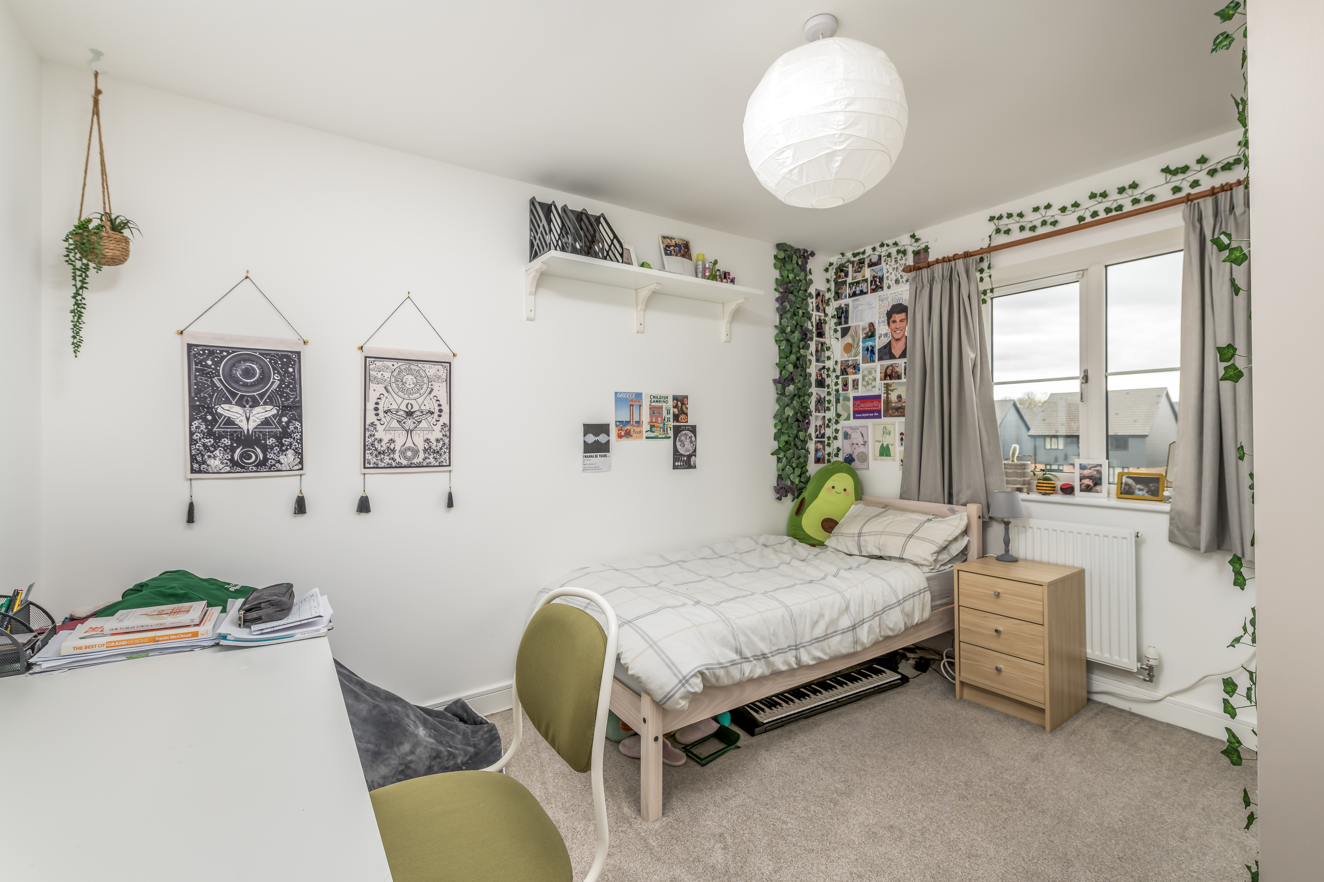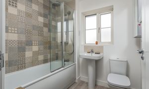Size-wise, your family will be set, with double-fronted accommodation delivering full-depth living spaces downstairs, alongside four double bedrooms upstairs. Two of the bedrooms have built-in mirror-fronted wardrobes, and one of them has a built-in cupboard, and lovely outlooks over fields. There’s both a family bathroom and an en suite shower room, fitted in Roca sanitaryware and with patterned tiling.
