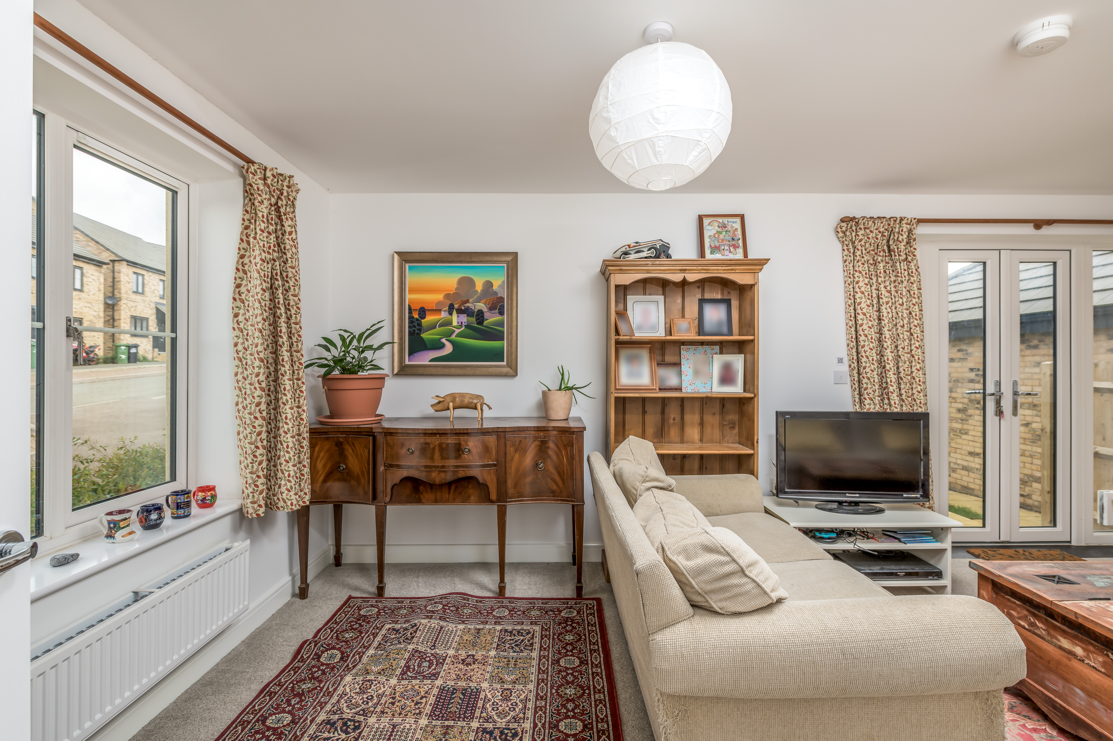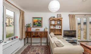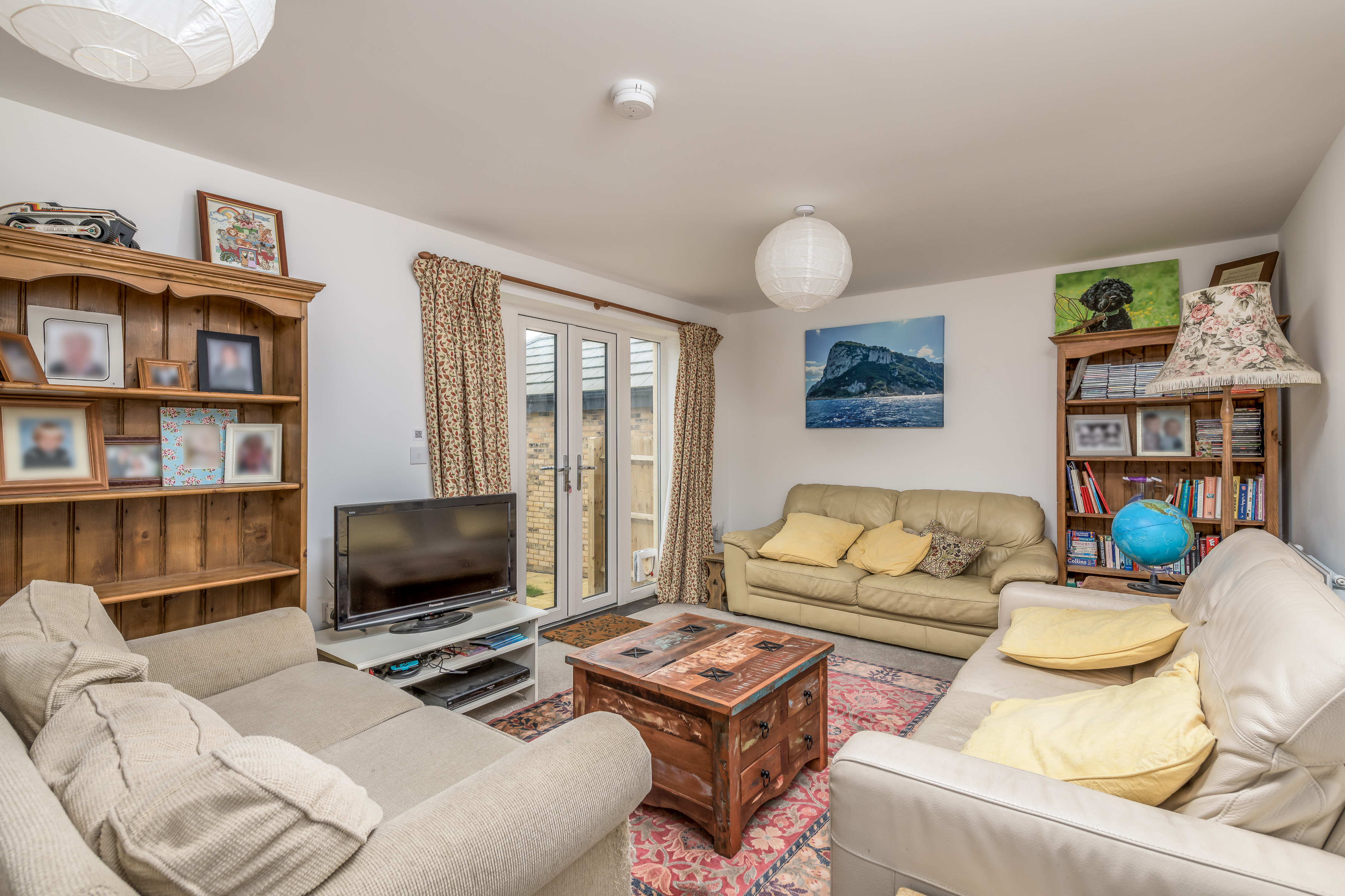 On the ground floor, the lounge to the left is plenty large enough not just for sofas, but also for somewhere to spread out toys or to sit down at a desk. There’s light coming in through a window to the front, and French doors to the side straight out onto the garden. Currently laid to lawn with a small patio, the garden is a blank canvas, allowing for whatever you’re inspired by outdoors.
