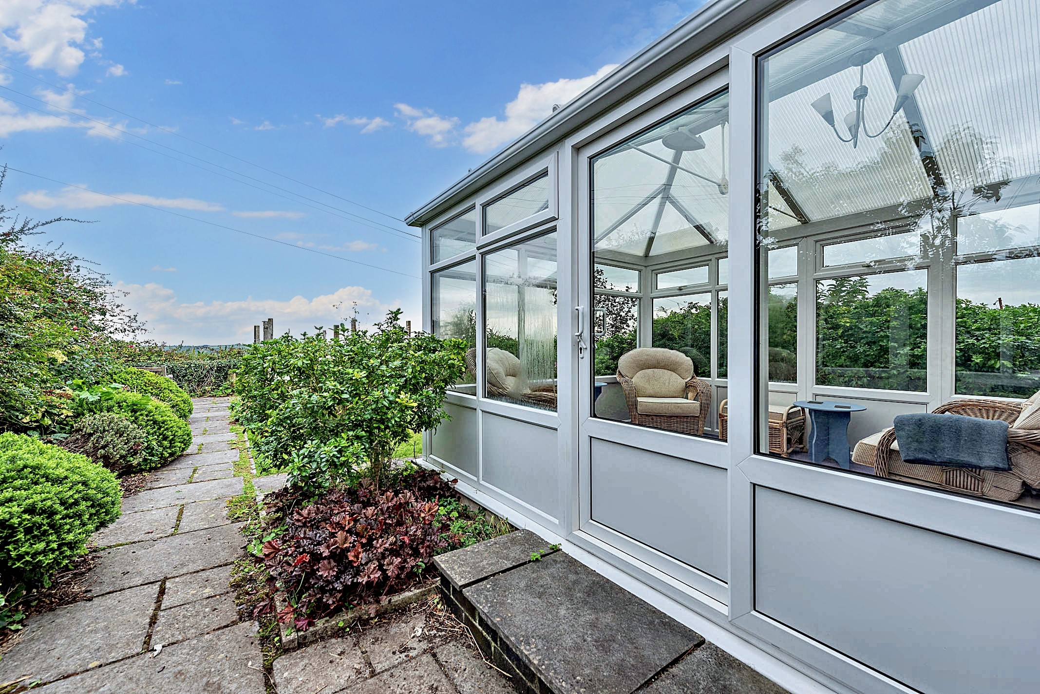 Externally, to the rear, there is a low maintenance garden laid to lawn with un-interrupted views over the countryside. To the fore there is a driveway providing off road parking for two vehicles and a pleasant lawn area.