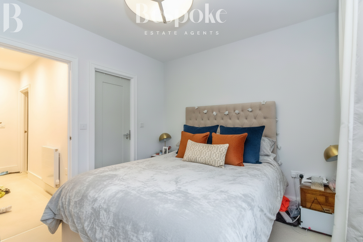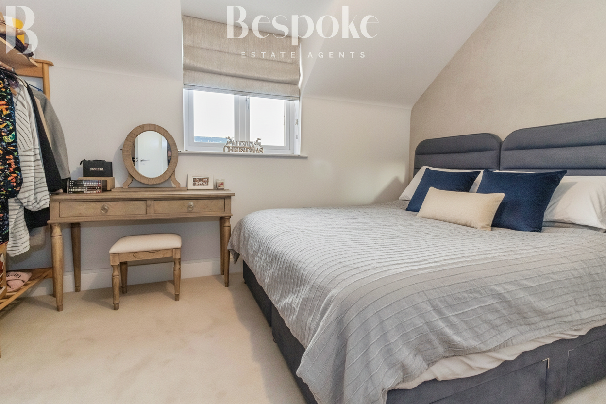 A comfortable and well proportioned double bedroom, positioned to the rear of the property for a quieter setting. The room offers ample space for a double bed and additional bedroom furniture, with a calm, neutral finish that creates a relaxing atmosphere. Natural light flows in through the window, while the layout allows for excellent use of space, including bedside furniture and storage. A door leads directly through to the en suite, providing a practical and private arrangement. A well balanced principal bedroom, suited to everyday comfort and privacy.