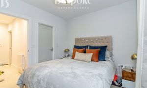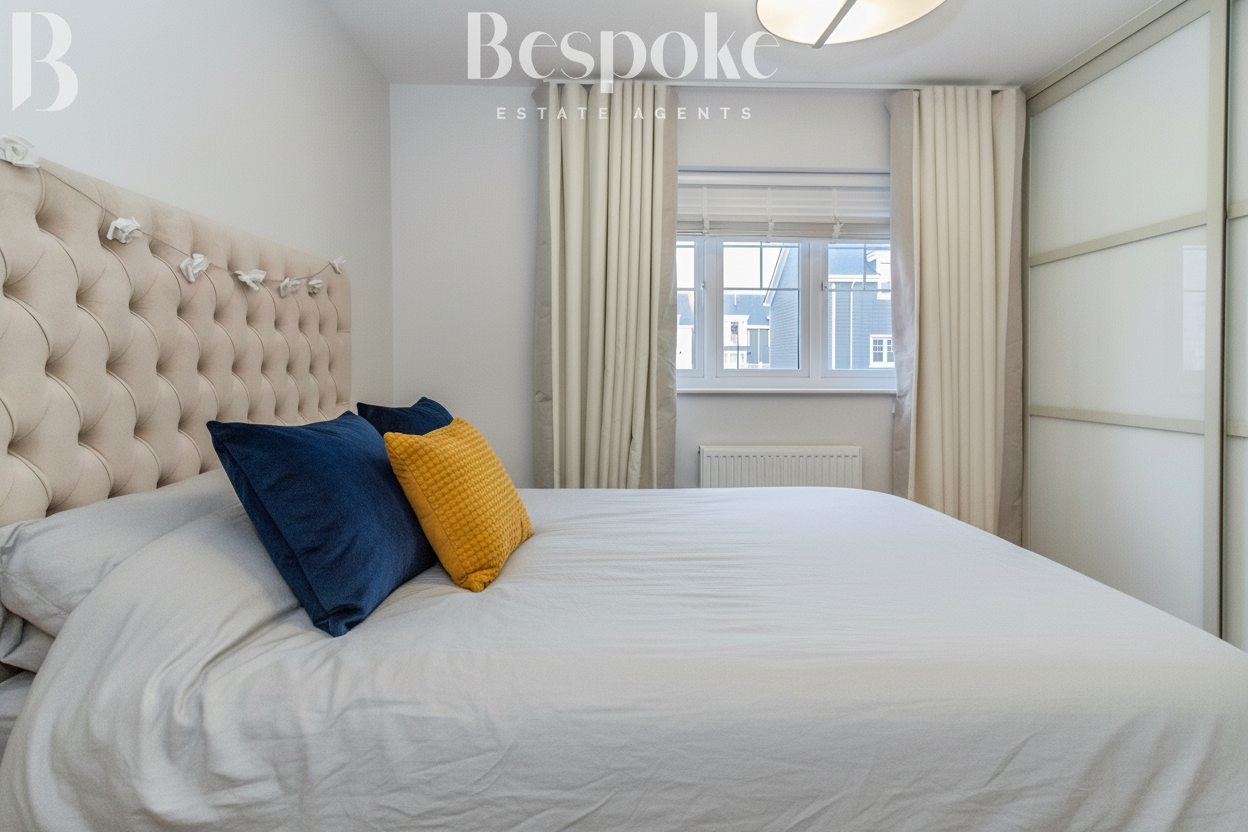A well proportioned double bedroom located on the second floor, offering a comfortable and versatile space. The room easily accommodates a double bed along with bedside furniture and storage, making it ideal for family members or guests. The neutral décor and soft natural light create a calm and restful atmosphere, while the layout allows for practical use of space. A well balanced bedroom that works equally well as a permanent bedroom, guest room, or home office if required.