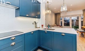 A beautifully finished, contemporary kitchen that forms the heart of the ground floor. Fitted with a range of deep blue shaker style units, the kitchen is paired with sleek white worktops and matching metro tiled splashbacks, creating a smart and timeless contrast. The layout is both practical and social, with generous preparation space and a central peninsula that works perfectly as a breakfast bar or informal dining area. Integrated appliances include an electric hob, oven, extractor, fridge/freezer and dishwasher, while under unit lighting and recessed ceiling lights add both warmth and functionality. Open to the family and reception space, the kitchen is ideal for modern living, allowing easy interaction with the main living area and a natural flow through to the garden beyond. A stylish and well designed space, suited to both everyday use and entertaining.