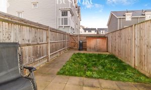 A private, enclosed rear garden offering a low maintenance outdoor space, ideal for relaxing or entertaining. The garden is mainly laid to lawn with a paved patio area directly outside the rear of the house, providing a practical spot for outdoor seating and dining. Timber fencing surrounds the garden, creating a good level of privacy, while a rear access gate adds everyday convenience, particularly for bikes, bins, or garden access. A useful storage shed sits to the rear of the garden, offering additional space for tools and outdoor equipment. A functional and well proportioned garden that complements the home and adds valuable outdoor space.