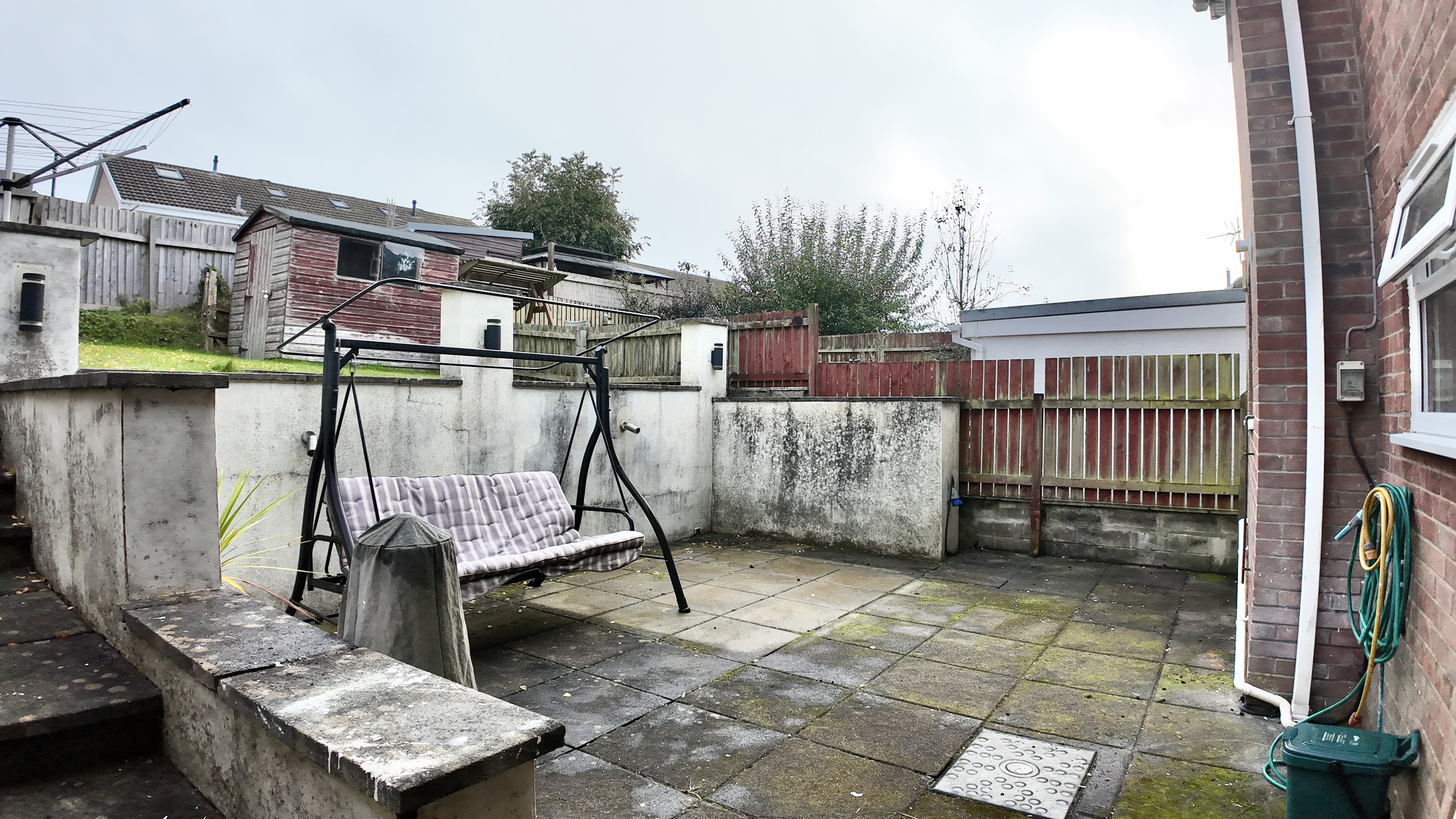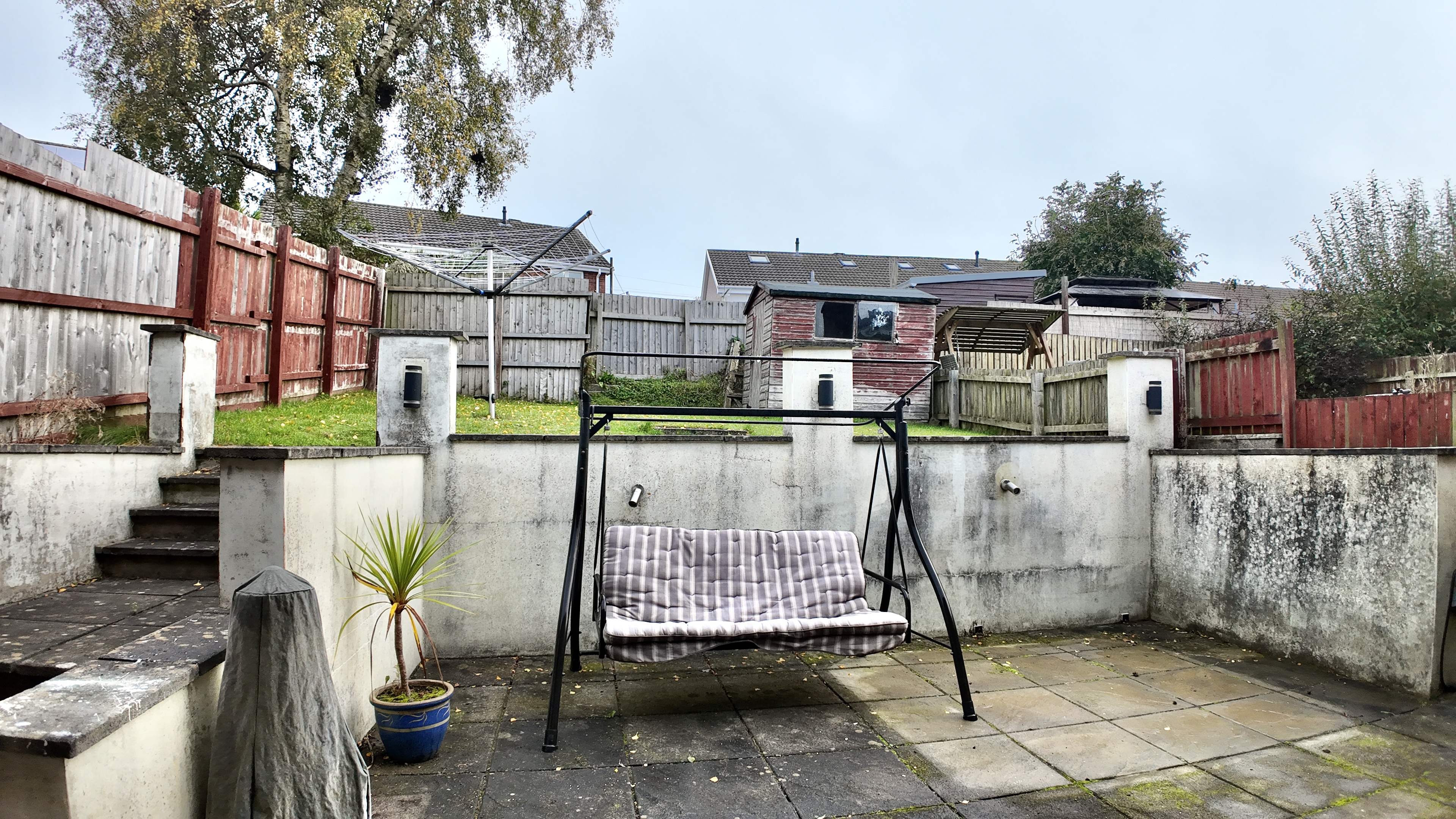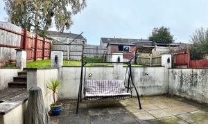 - Tiered rear garden with patio area and lawn