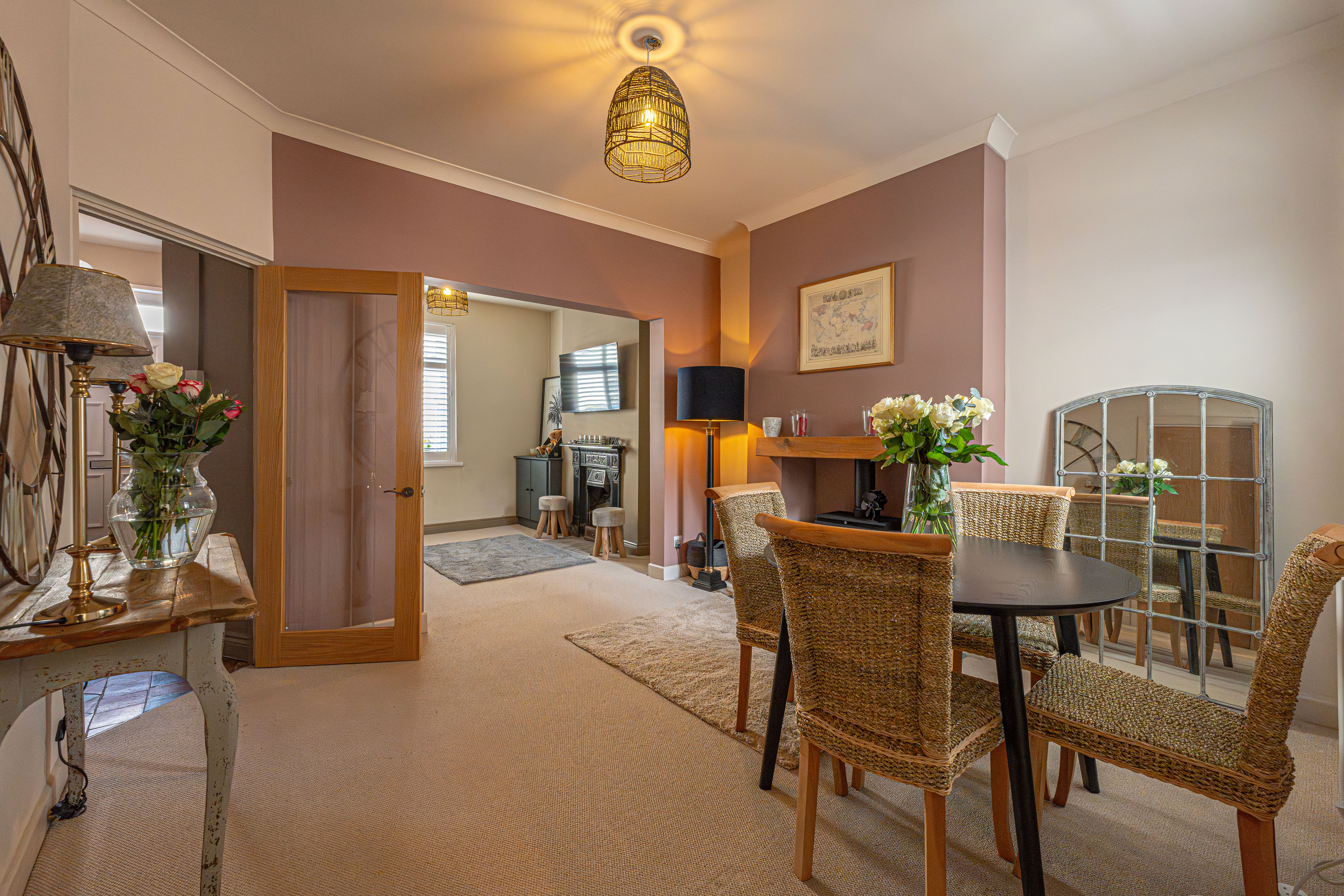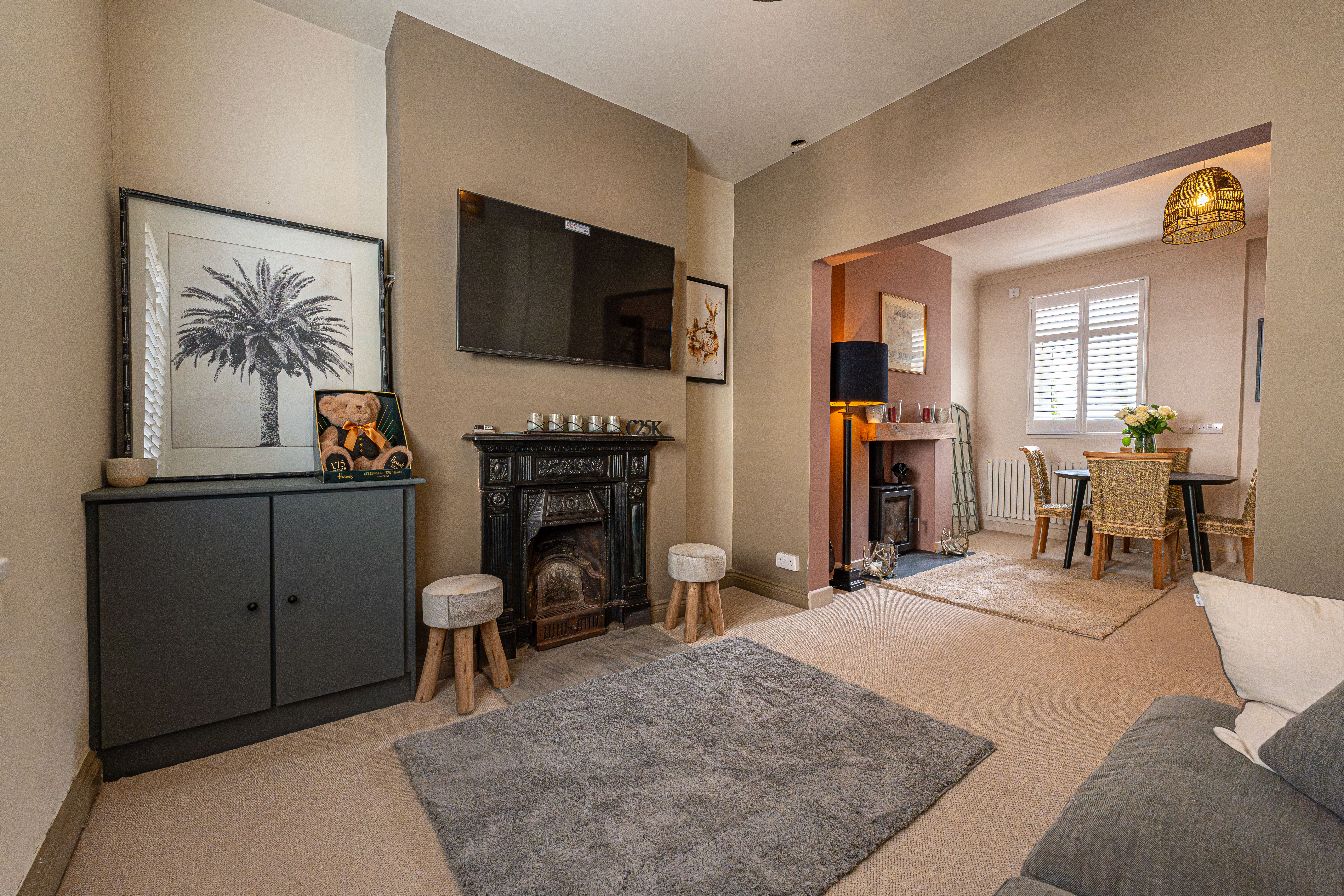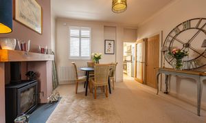 This beautifully presented family home offers a lovely blend of period charm and modern living throughout. Upon entry to the property we can find an inviting living room and dining area, combined with a fluid open plan design, and enhanced by abundant natural light and charming fireplaces, creating a warm and welcoming atmosphere for relaxing and entertaining. At the rear of the property we have a modern kitchen, equipped with sleek contemporary units for multiple storage options, in addition to various integrated appliances, and a doorway to the garden.