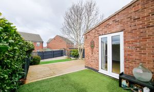 A westerly facing low-maintenance garden, with two sections of artificial grass, a large decked area, and a further gravelled area to the rear of the plot. Timber fencing to the boundaries, with timber shed, and gated access to the front of the property.