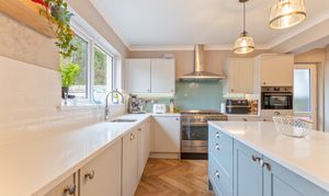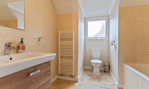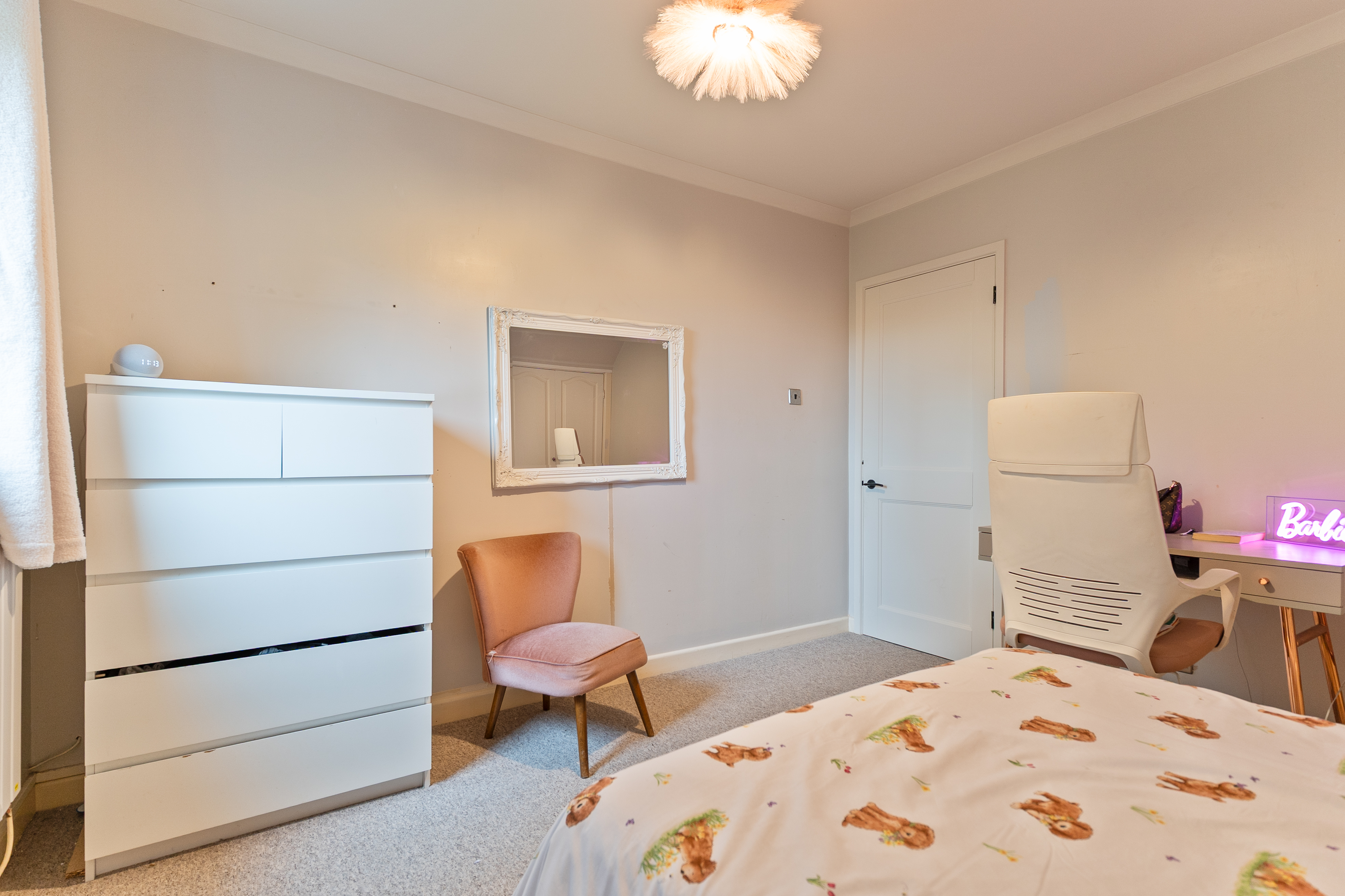 On the first floor, the property continues to impress with three large double bedrooms and a modern family bathroom. The primary bedroom benefits from its own en-suite shower room, providing a private and comfortable retreat. Each bedroom is beautifully presented, offering plenty of natural light, space for storage, and pleasant views over the surrounding area. The family bathroom is finished to a high standard, featuring contemporary fixtures and fittings.