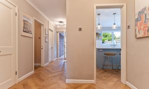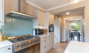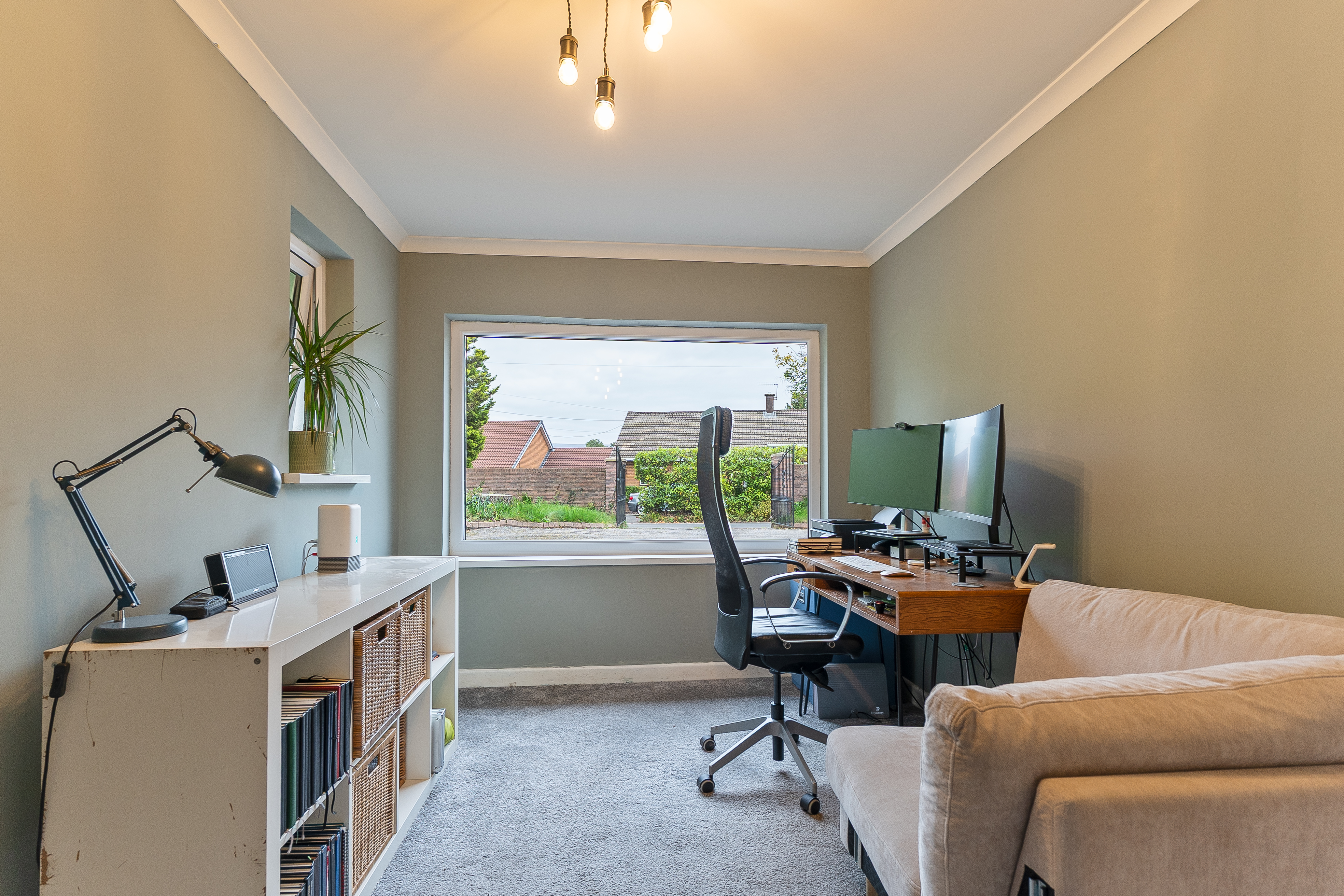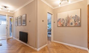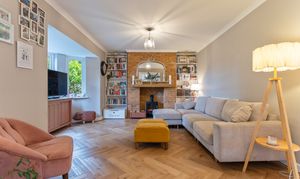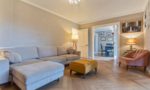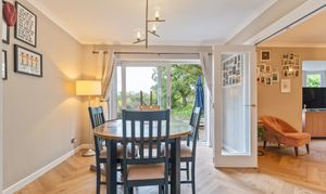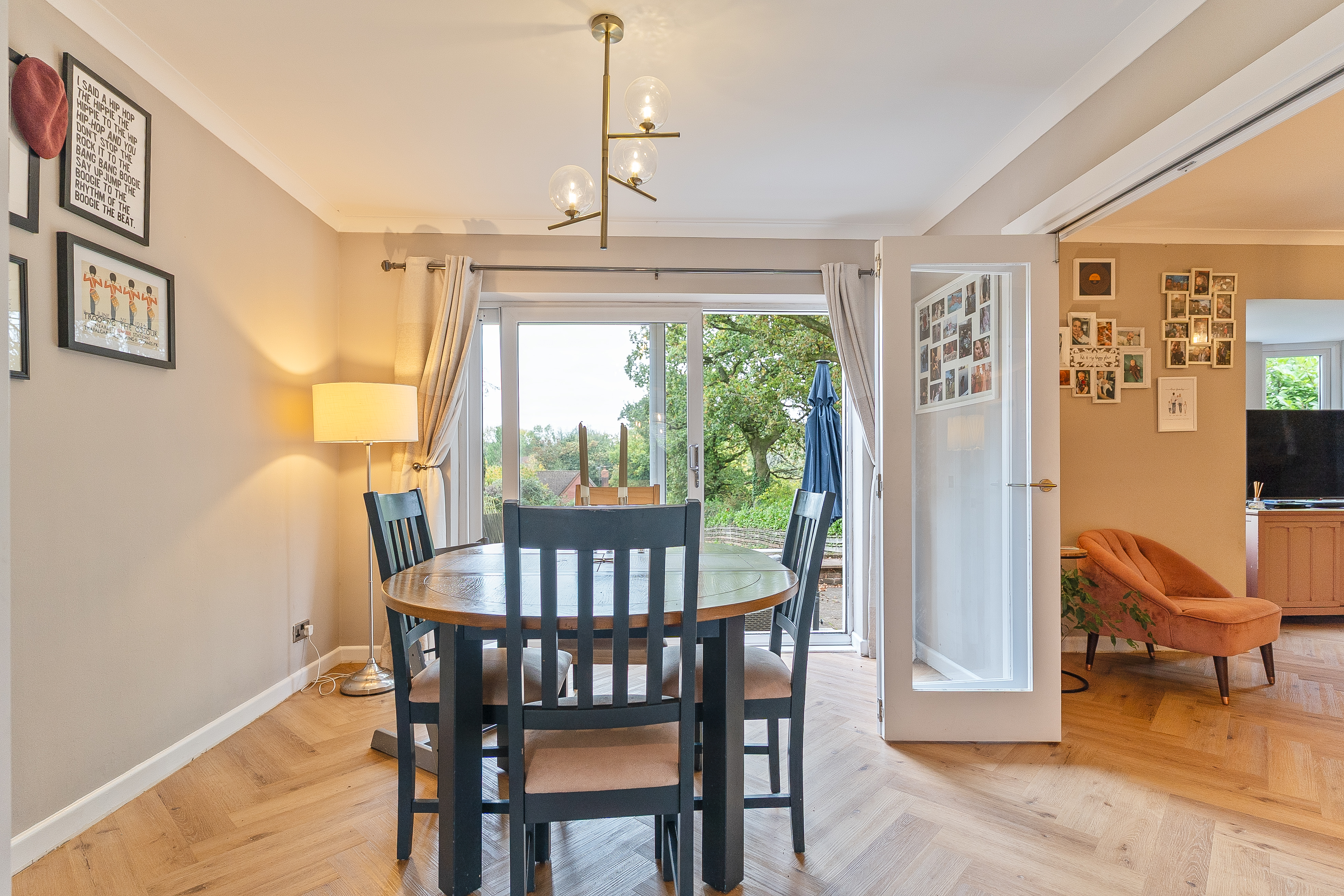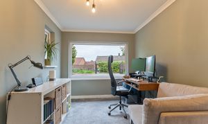 To the rear of the property are two spacious reception rooms - a large, elegant living room and a private dining room, connected by bi-fold doors that allow the spaces to be open and social or separated for privacy when needed. Both rooms benefit from an abundance of natural light and overlook the rear garden, creating a warm and inviting atmosphere. Along the right-hand side of the ground floor is a home office, ideal for those working remotely, as well as an additional reception room that can be utilised as a fourth bedroom, playroom, sitting room, or a larger office, depending on the needs of the household.
