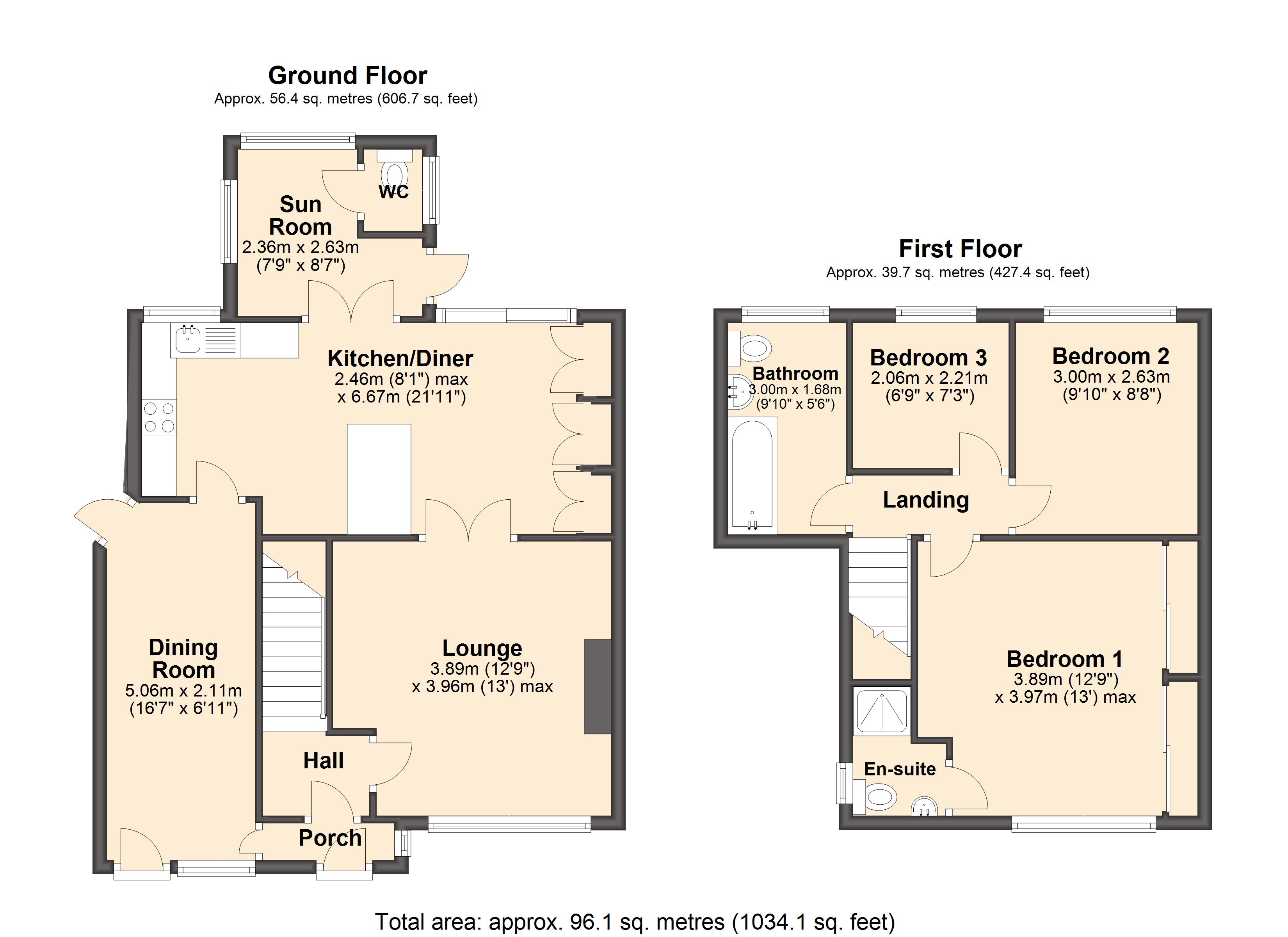 Enjoying plenty of natural light this extended family home combines generous living space with quality and style. There's a good sized lounge which is complemented by a wonderful integrated kitchen/diner, sunroom and WC on the ground floor. The first floor provides three well-proportioned bedrooms, the principal bedroom with en-suite and a tiled three-piece family bathroom.