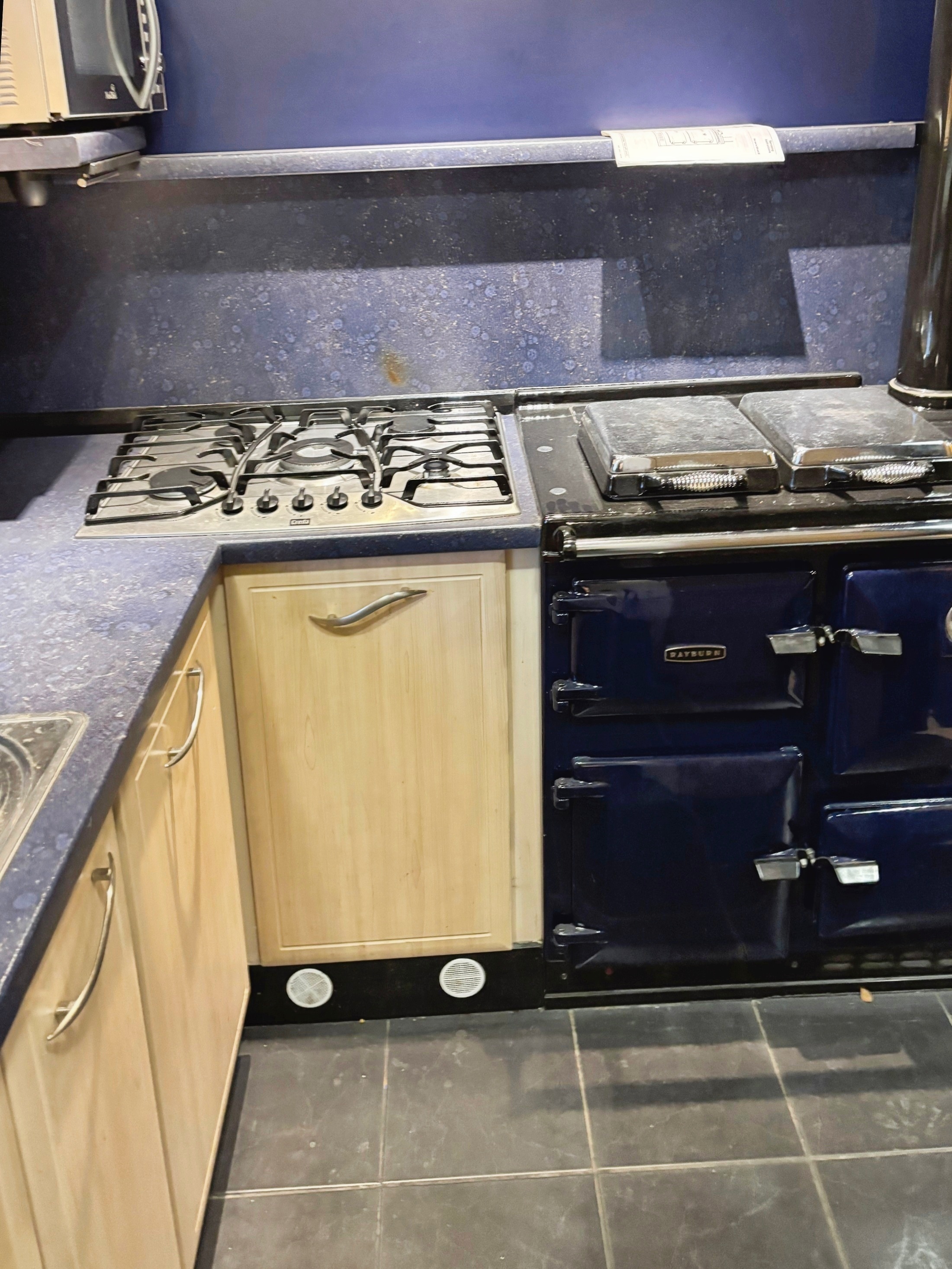 Galley kitchen with views over loch. LPG (gas) range and electric hob, double stainless steel sinks, kitchen units and work surfaces. Fitted fridge/freezer. Oil-fired Rayburn cooker with boiler function.