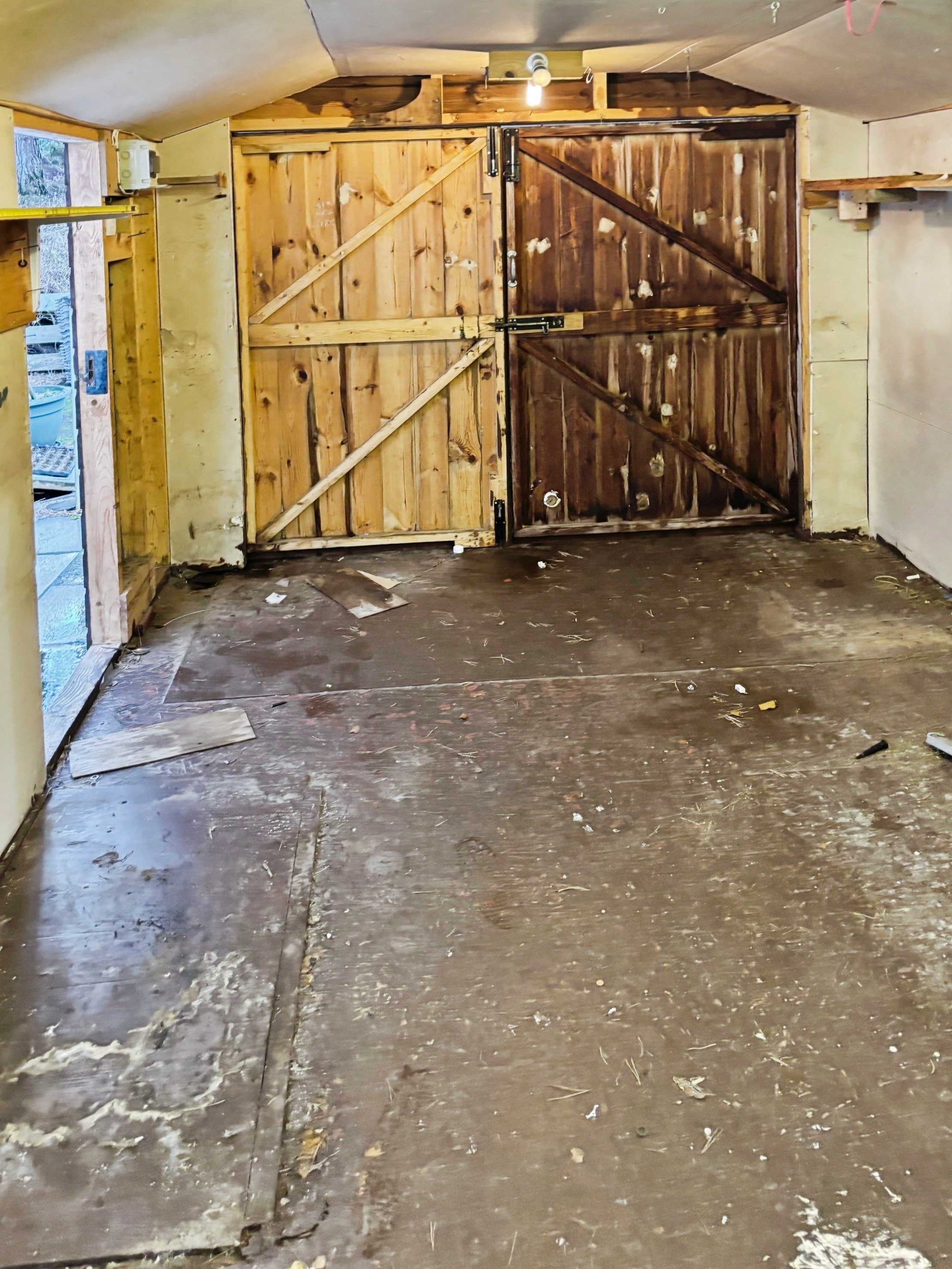 Rear entrance to hallway with storeroom, access to all rooms and Ramsey ladder to attic.