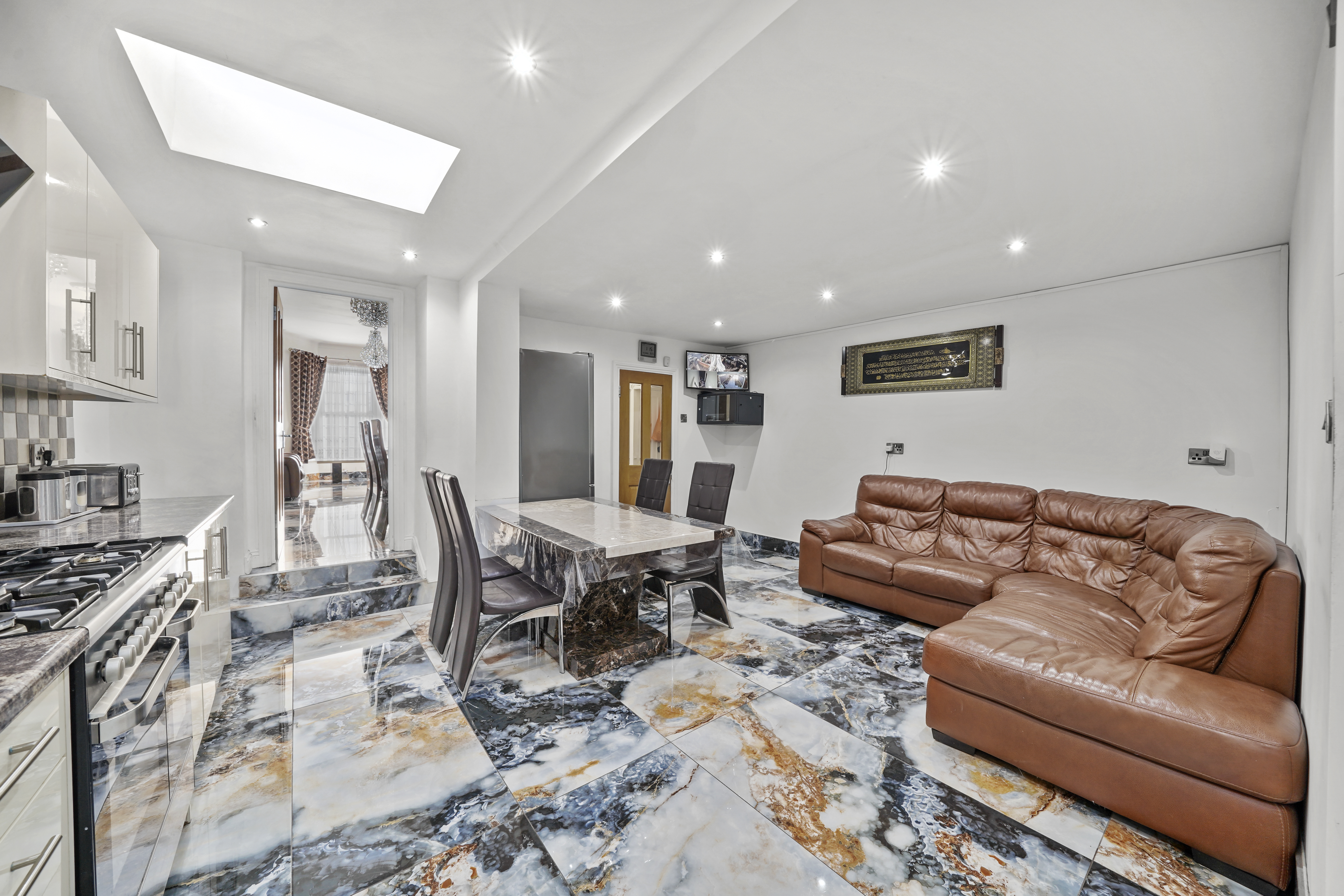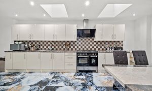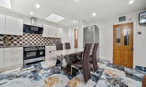 To the rear, the home truly opens up into a vast open-plan kitchen, dining and reception space. This beautifully extended area provides exceptional proportions, making it the perfect hub of the home. There is ample room for cooking, dining, and relaxing, with a seamless connection out to the garden, ideal for entertaining.