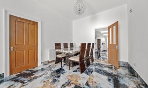 Ground FloorThe property opens into a welcoming entrance hall, leading into a stunning bay-fronted dining/reception room. This elegant space is filled with natural light and enhanced by high ceilings, creating a bright and inviting setting for both everyday living and hosting guests.