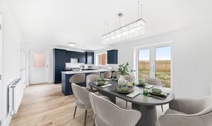 - Open-plan kitchen diner with peninsular kitchen and French doors from lounge